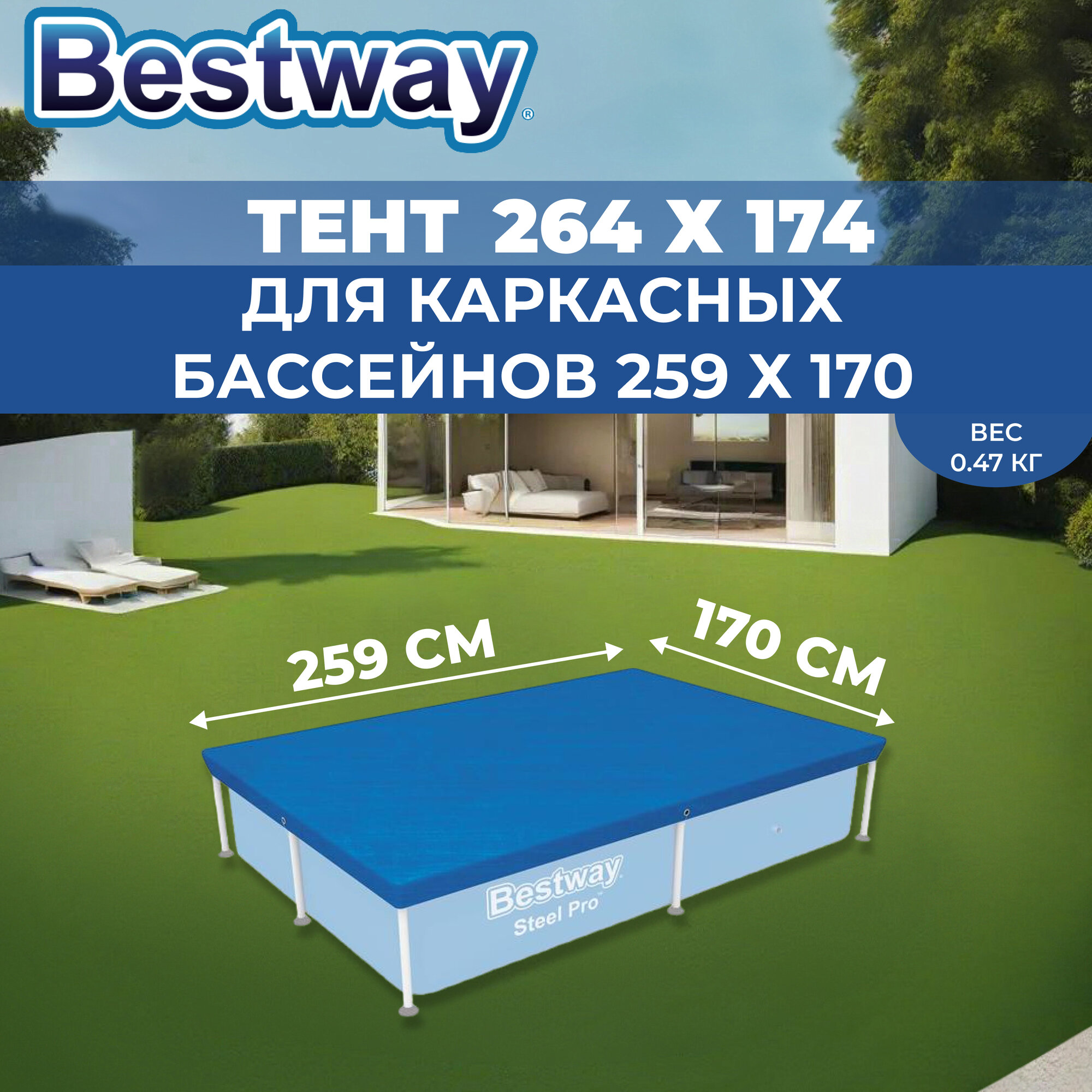 Тент для каркасных бассейнов размером 259*170 см, 58105 Bestway