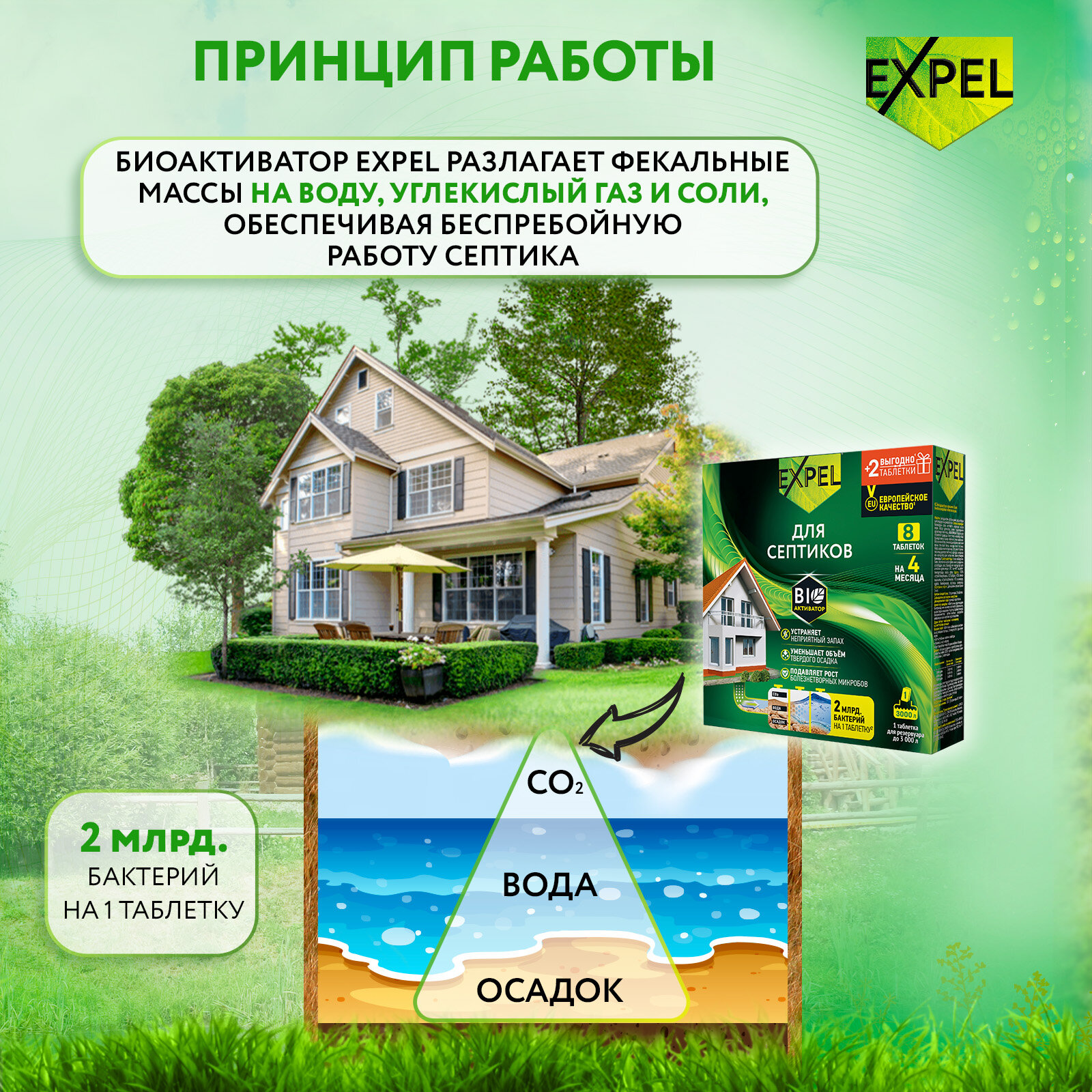 Купить Биоактиватор для септиков и выгребных ям, Бактерии, средство для дачного туалета Expel, 10 таблеток, 2 уп