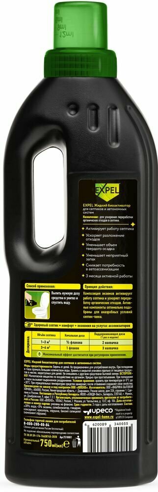 Купить Бактерии для септика, жидкий биоактиватор для септиков и автономных систем Expel, 750 мл на 12 недель
