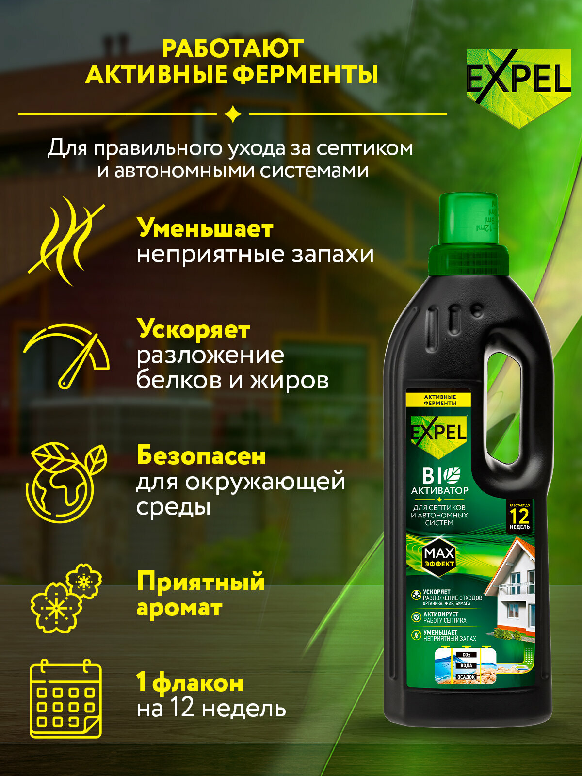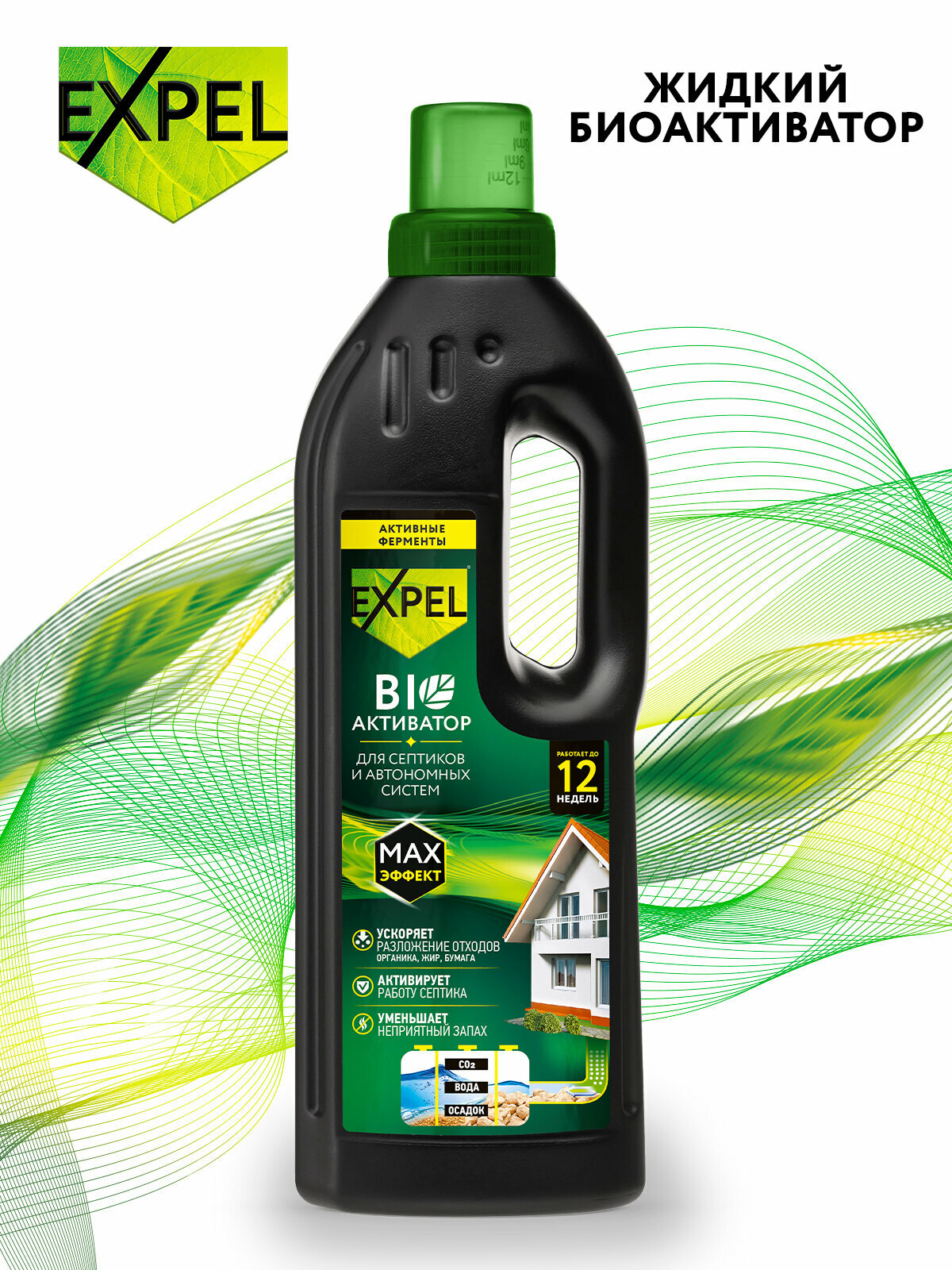 Жидкий биоактиватор для септиков и автономных систем Expel, 750 мл на 12 недель