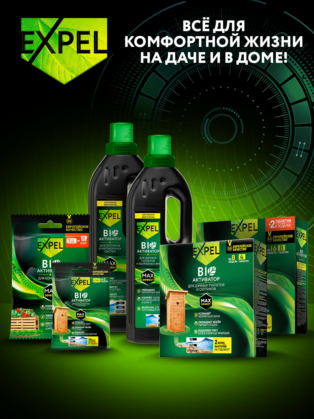 Жидкий биоактиватор Expel для септиков и автономных систем, 750 мл х 2 шт.