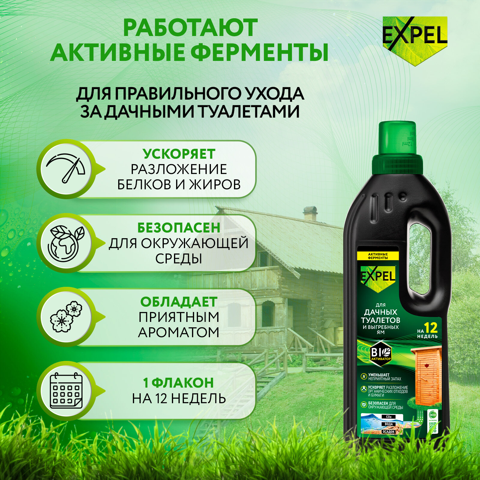 EXPEL Жидкий биоактиватор Для дачных туалетов и выгребных ям, 750 мл/