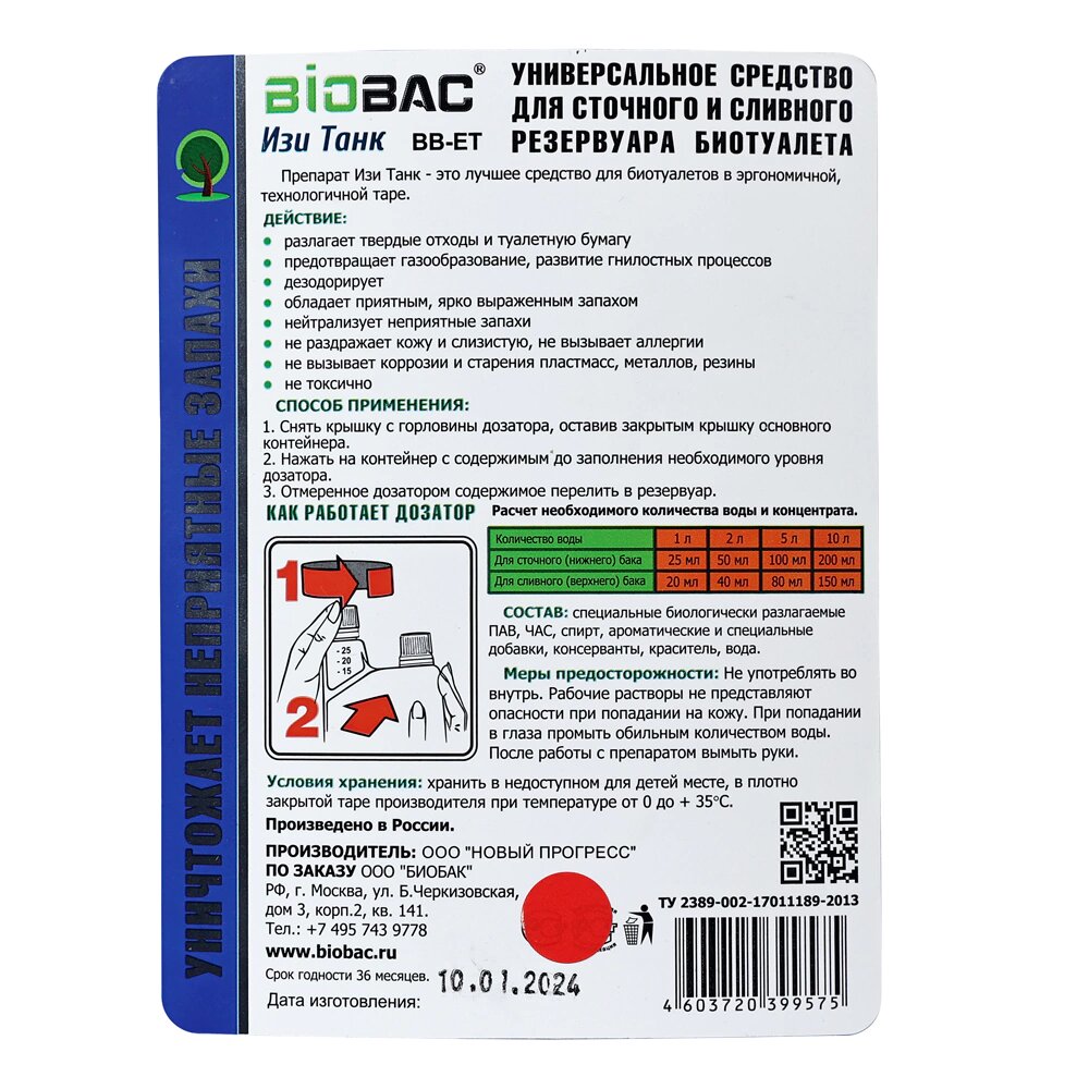 Средство для биотуалета BIOBAC универсально Easy Tank с дозатором 1л интересное: