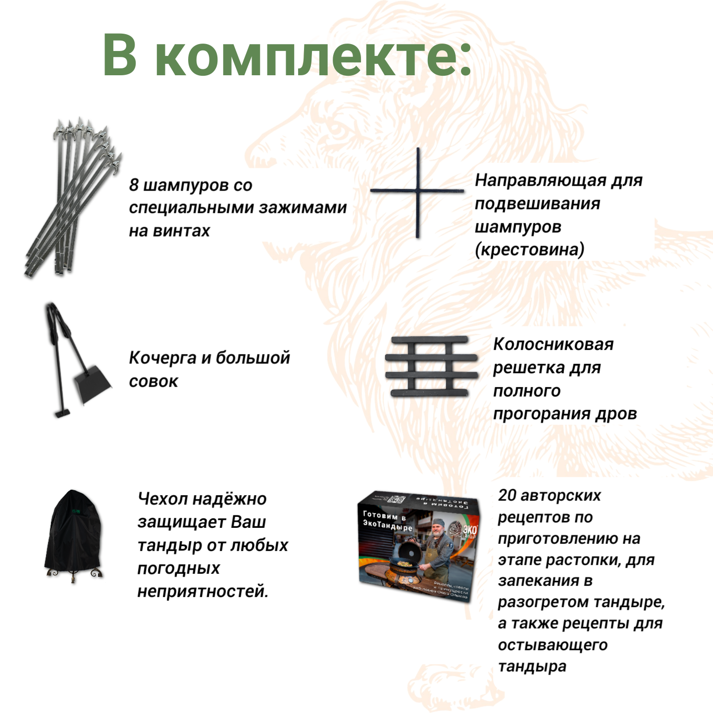 Тандыр Арслан слоновая кость с термометром / чехол, сборник рецептов и конверт с открытками-рецептами в подарок