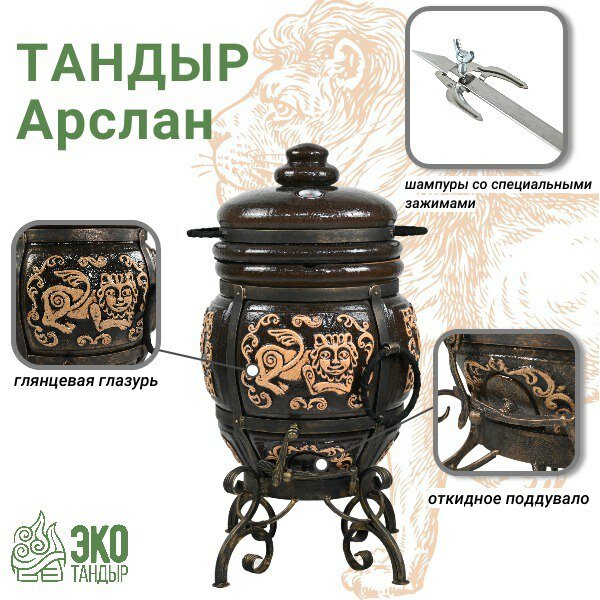 СохранитьТандырЭкоТандыр Арслан, цвет черный / тандыр с подставкой и термометром в комплекте, чехол в подарок интересное:
