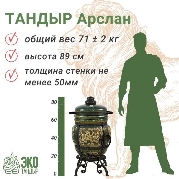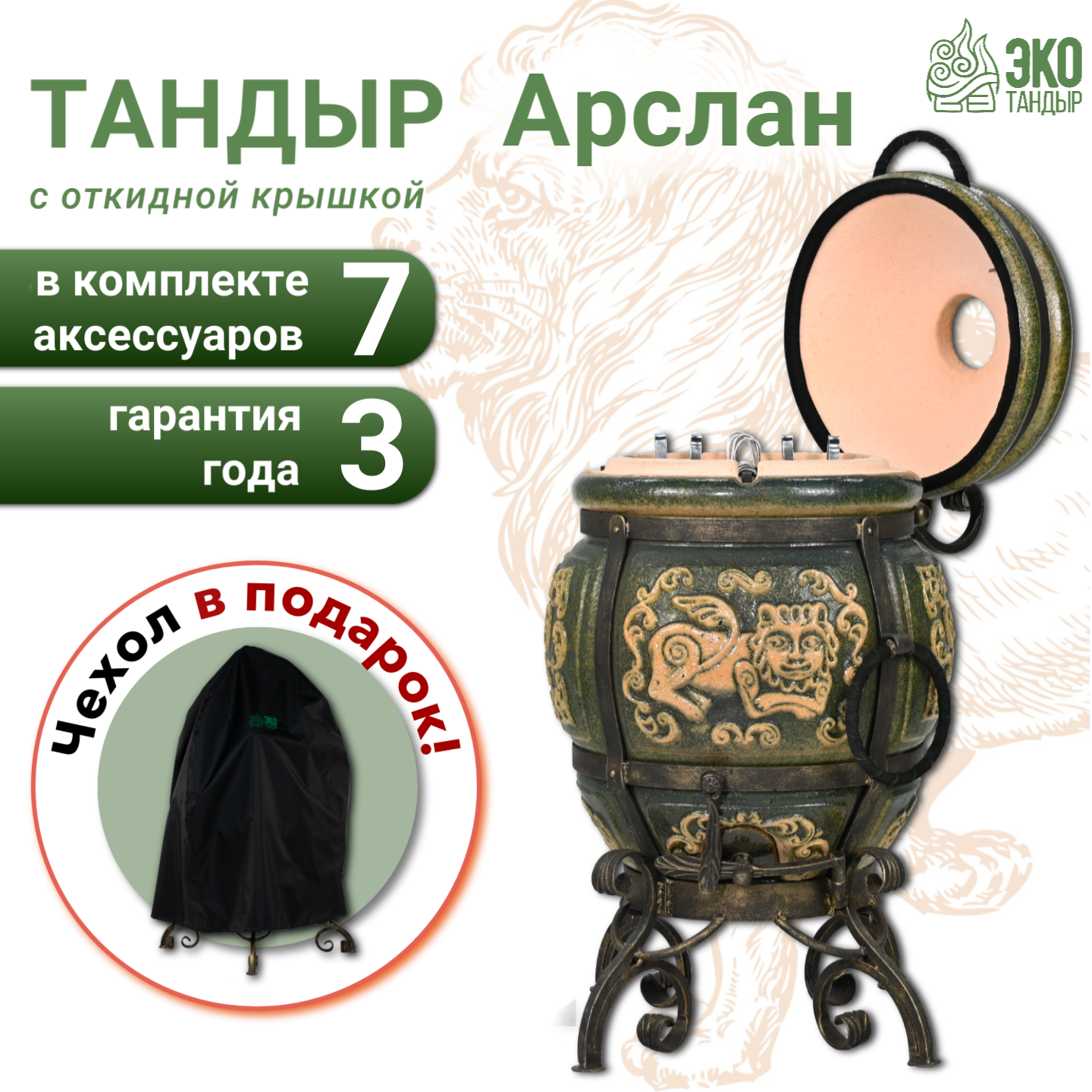 ТандырЭкоТандыр Арслан, цвет черный / тандыр с подставкой и термометром в комплекте, чехол в подарок