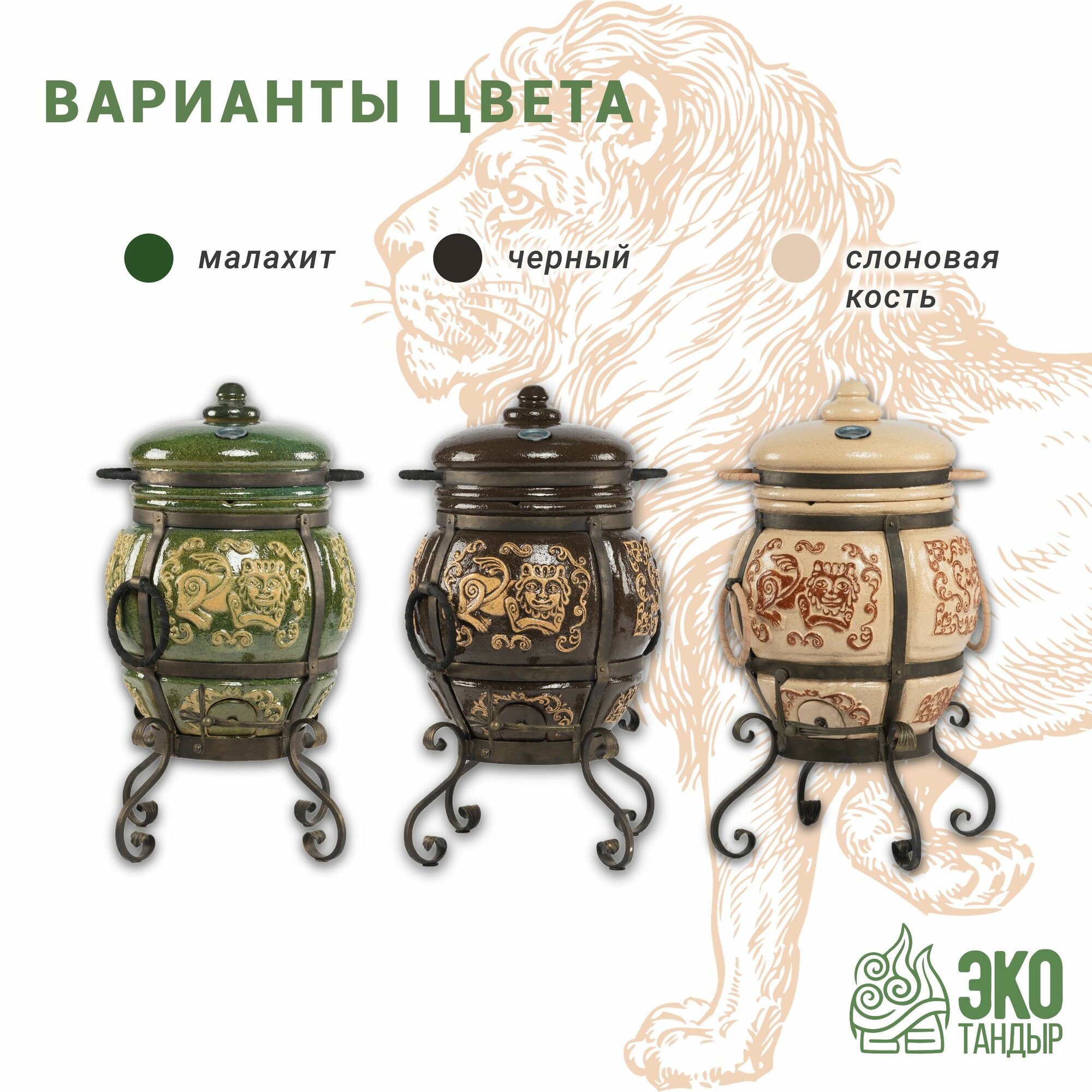 Тандыр ЭкоТандыр Арслан с откидной крышкой в цвете малахит, маленький тандыр для дачи