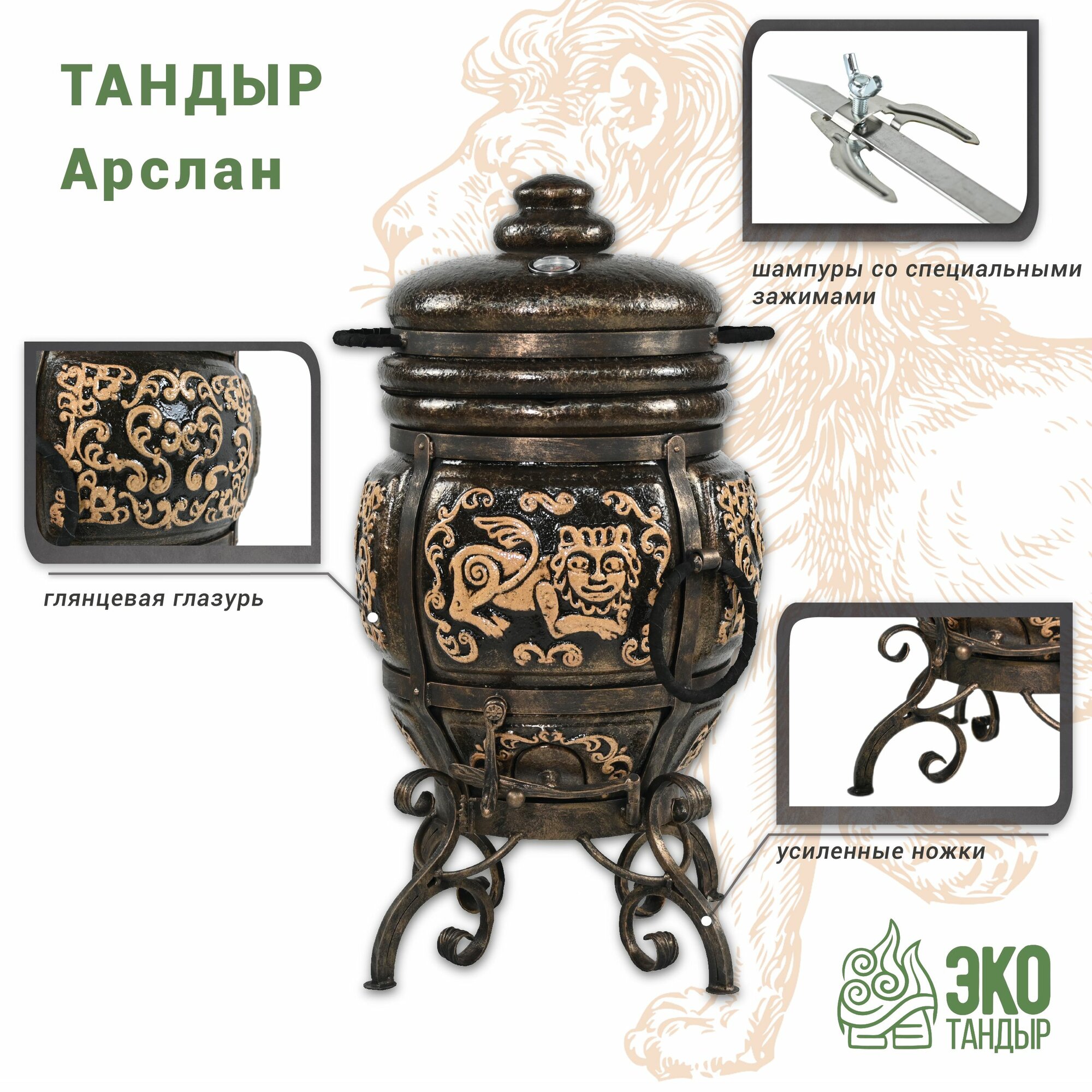 ТандырЭкоТандыр Арслан, цвет черный / тандыр с подставкой и термометром в комплекте, чехол в подарок