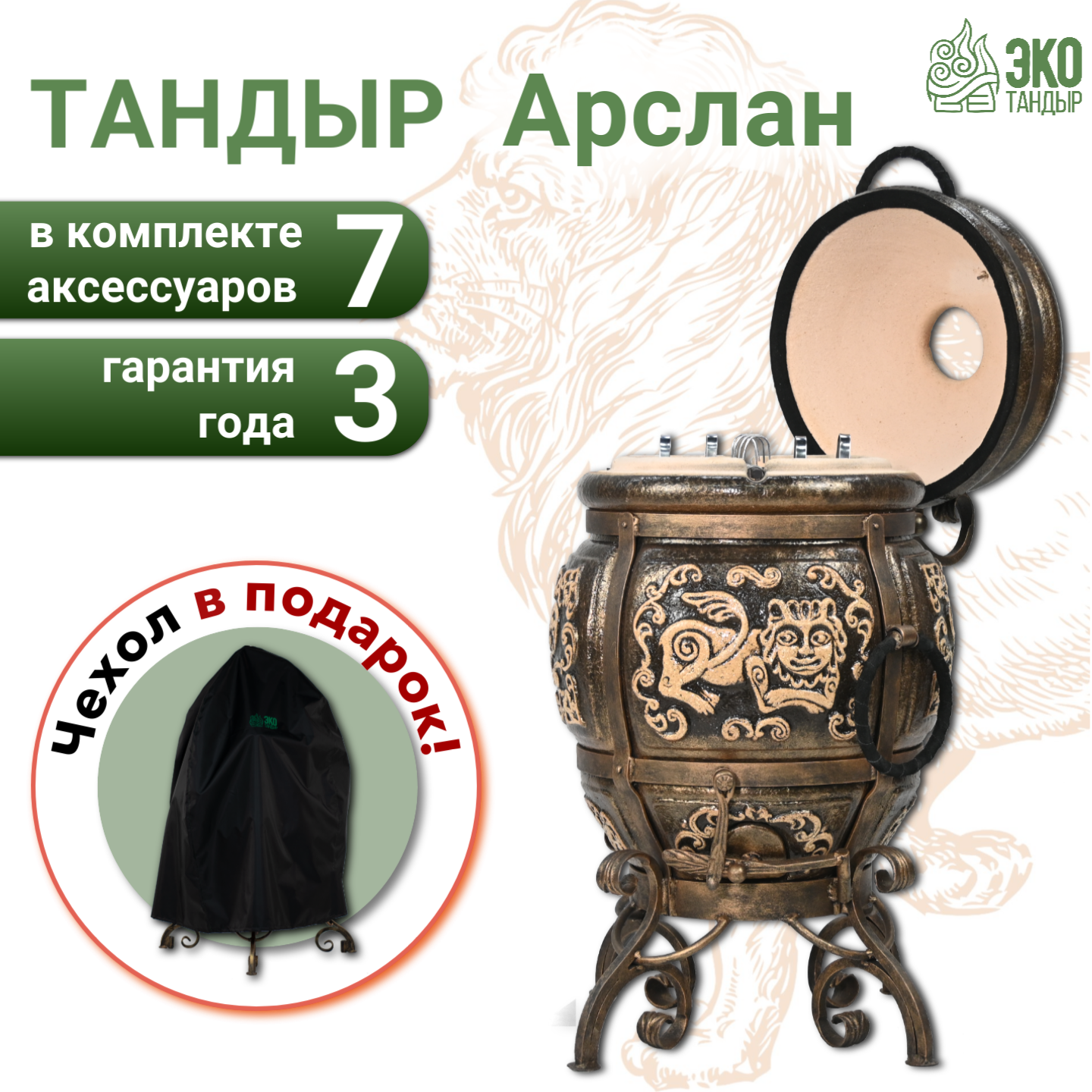 ТандырЭкоТандыр Арслан, цвет черный / тандыр с подставкой и термометром в комплекте, чехол в подарок