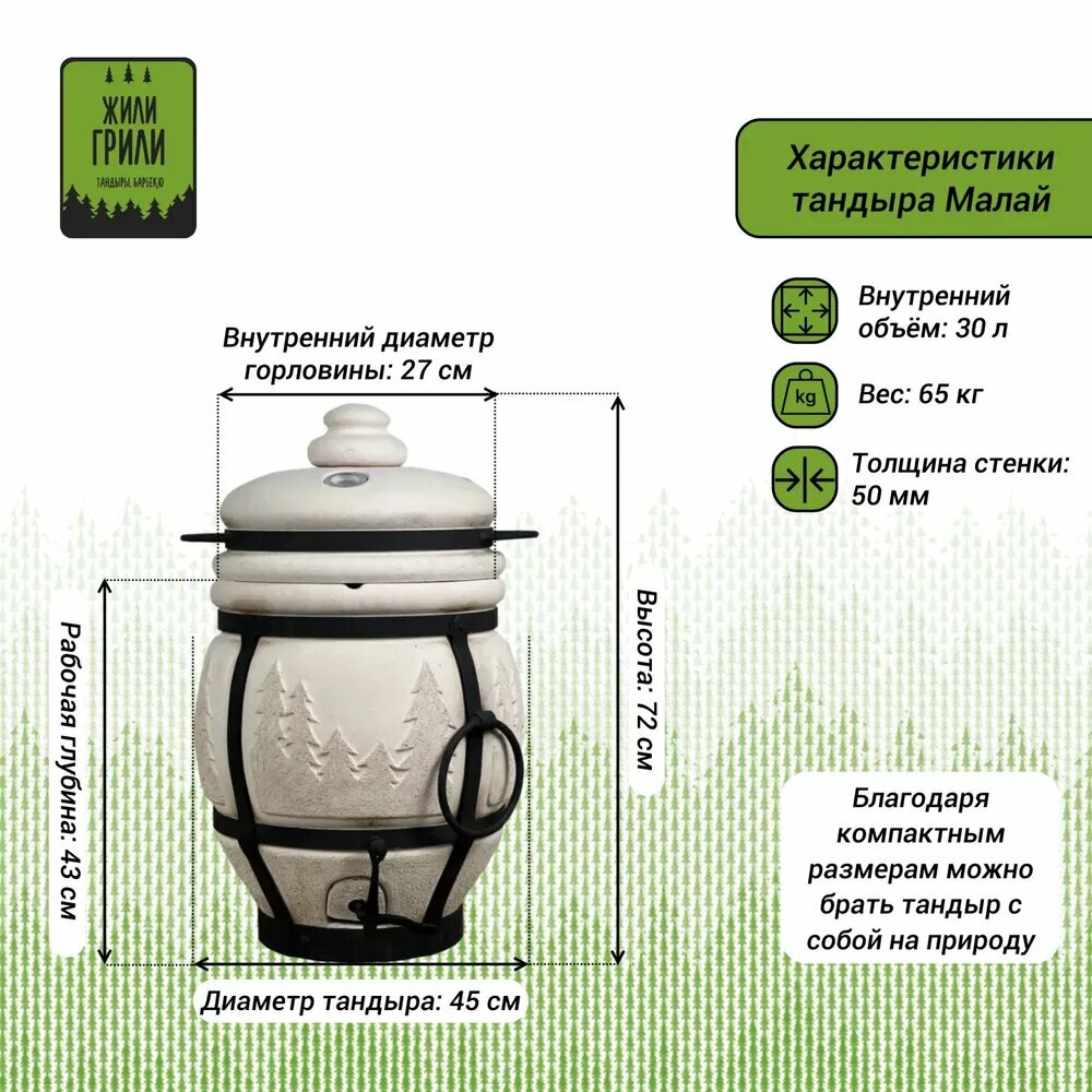 Купить Тандыр ЖилиГрили Малай с термометром / небольшой тандыр, специи в подарок