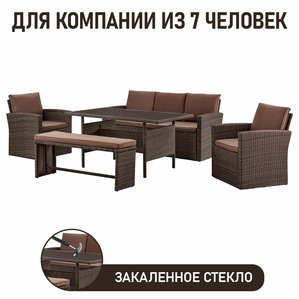 Садовая мебель Палермо-7 комплект из искусственного ротанга, коричневый