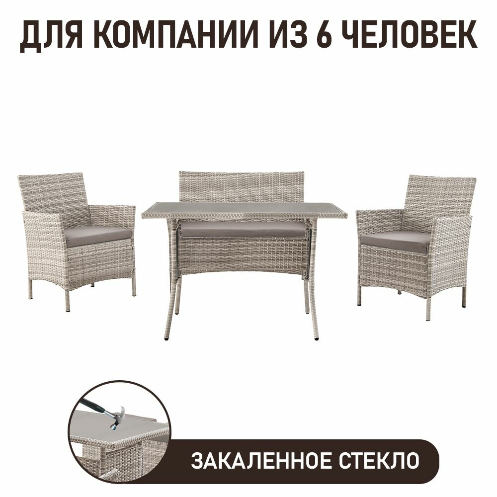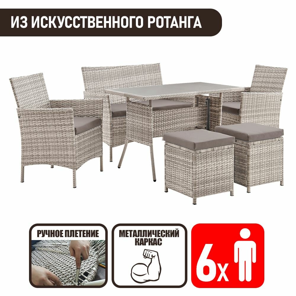 Набор садовой мебели для дачи Киото-6 из искусственного ротанга, серый интересное: