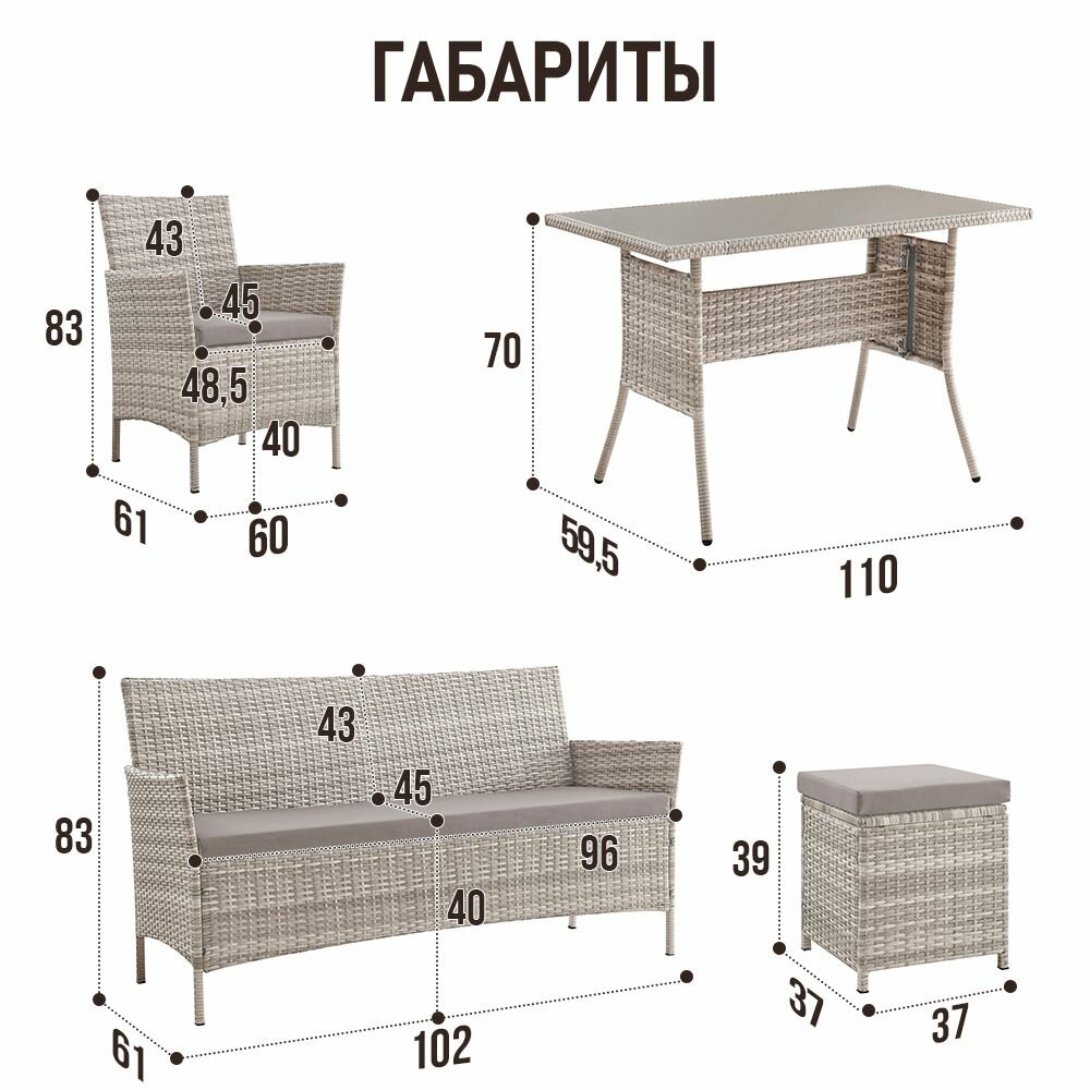 Набор террасной мебели Глория-2 с1195/125 / Обеденный стол / диван / 2 кресла