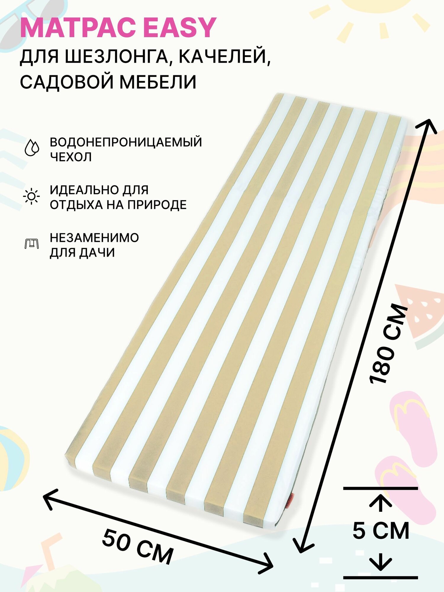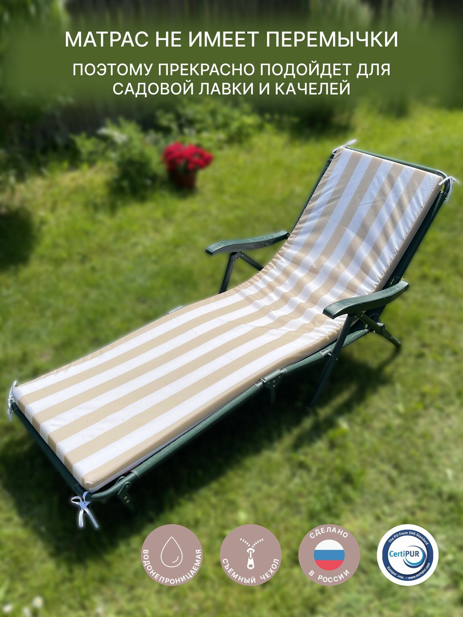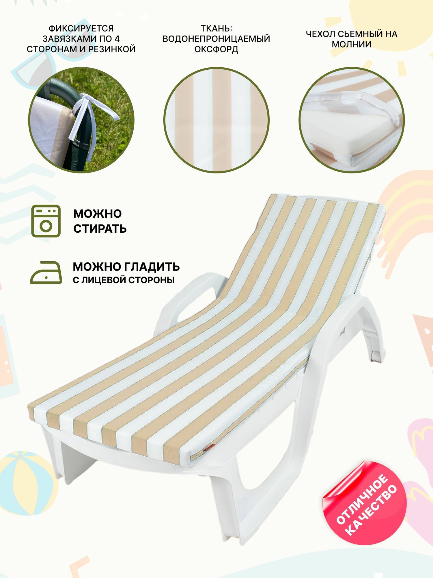 Матрас для шезлонга, лежака, топпер пляжный 180/50 см бежево- белая полоса