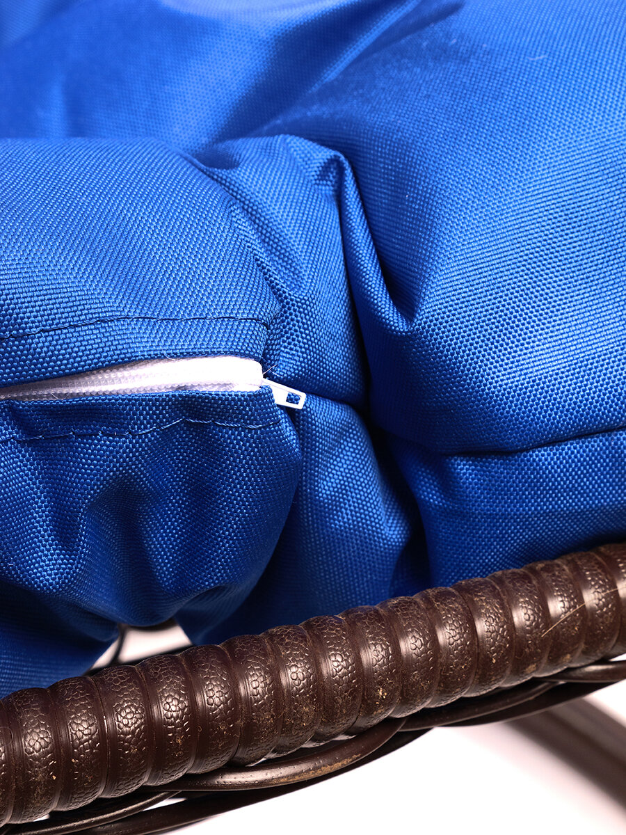 Подвесное кресло для двоих с ротангом коричневое, синяя