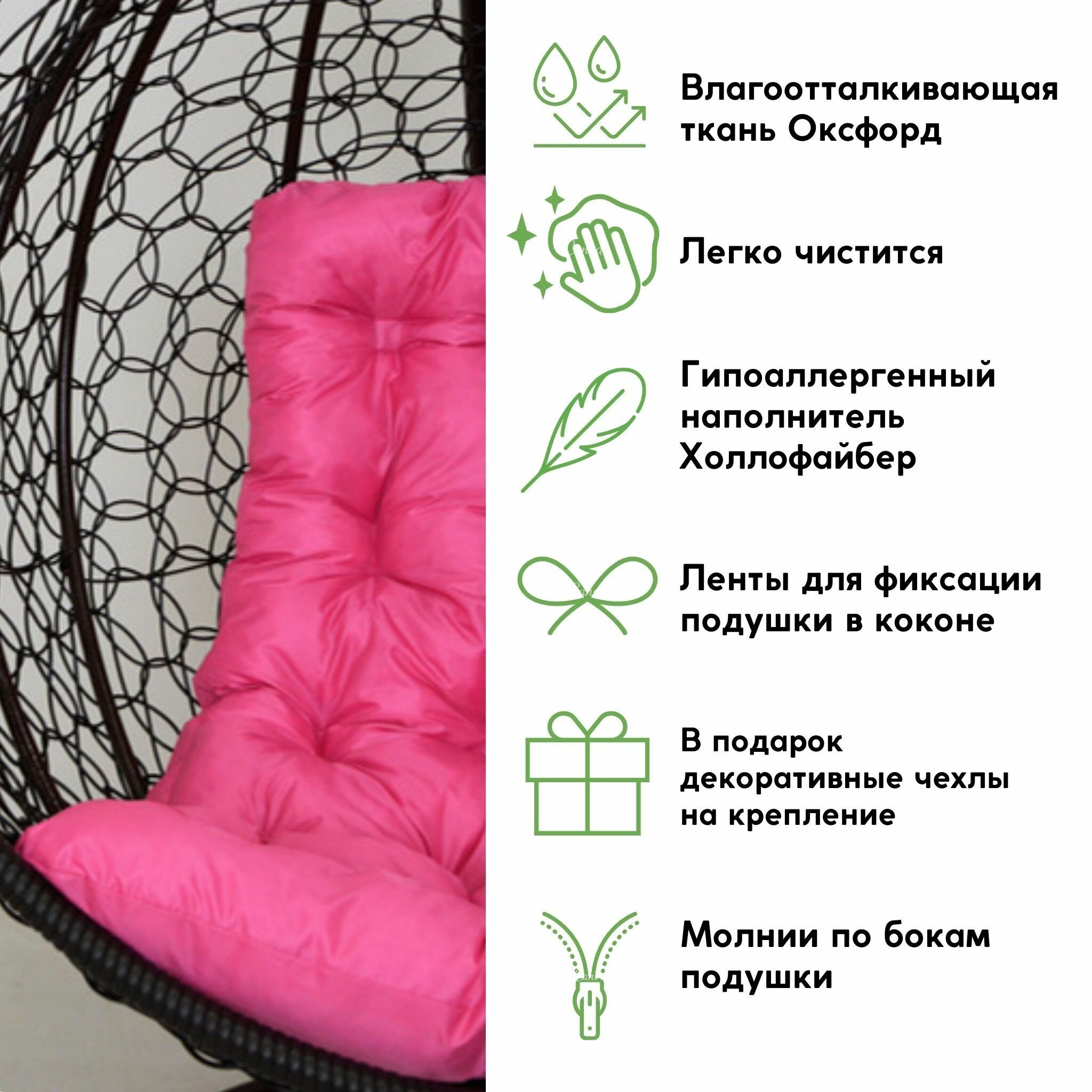 Подвесное кресло-кокон Mollis для дома и улицы Венге с круглой Розовой подушкой