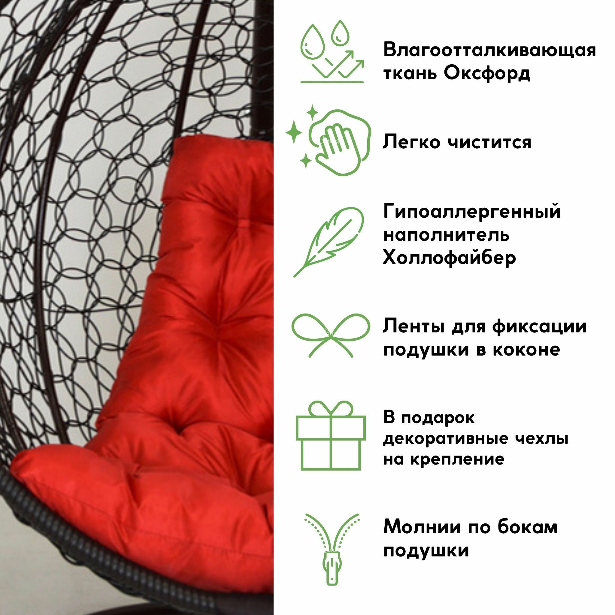 Подвесное кресло-кокон Mollis для дома и улицы Венге с круглой Красной подушкой