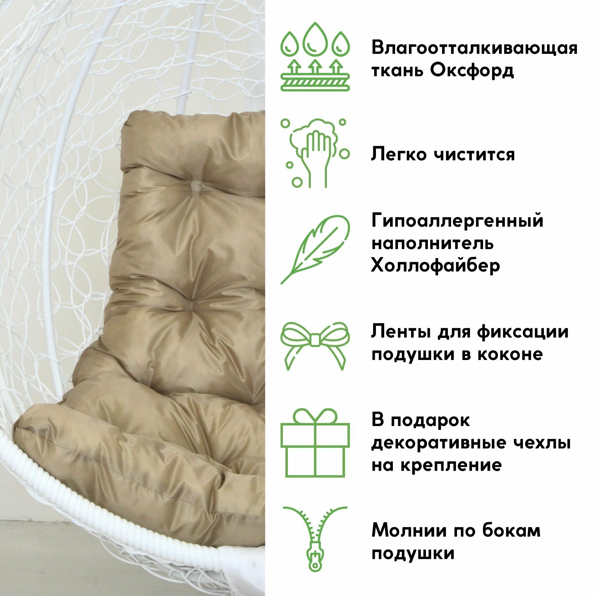 Подвесное кресло-кокон Mollis для дома и улицы Белый с Коричневой подушкой трапеция