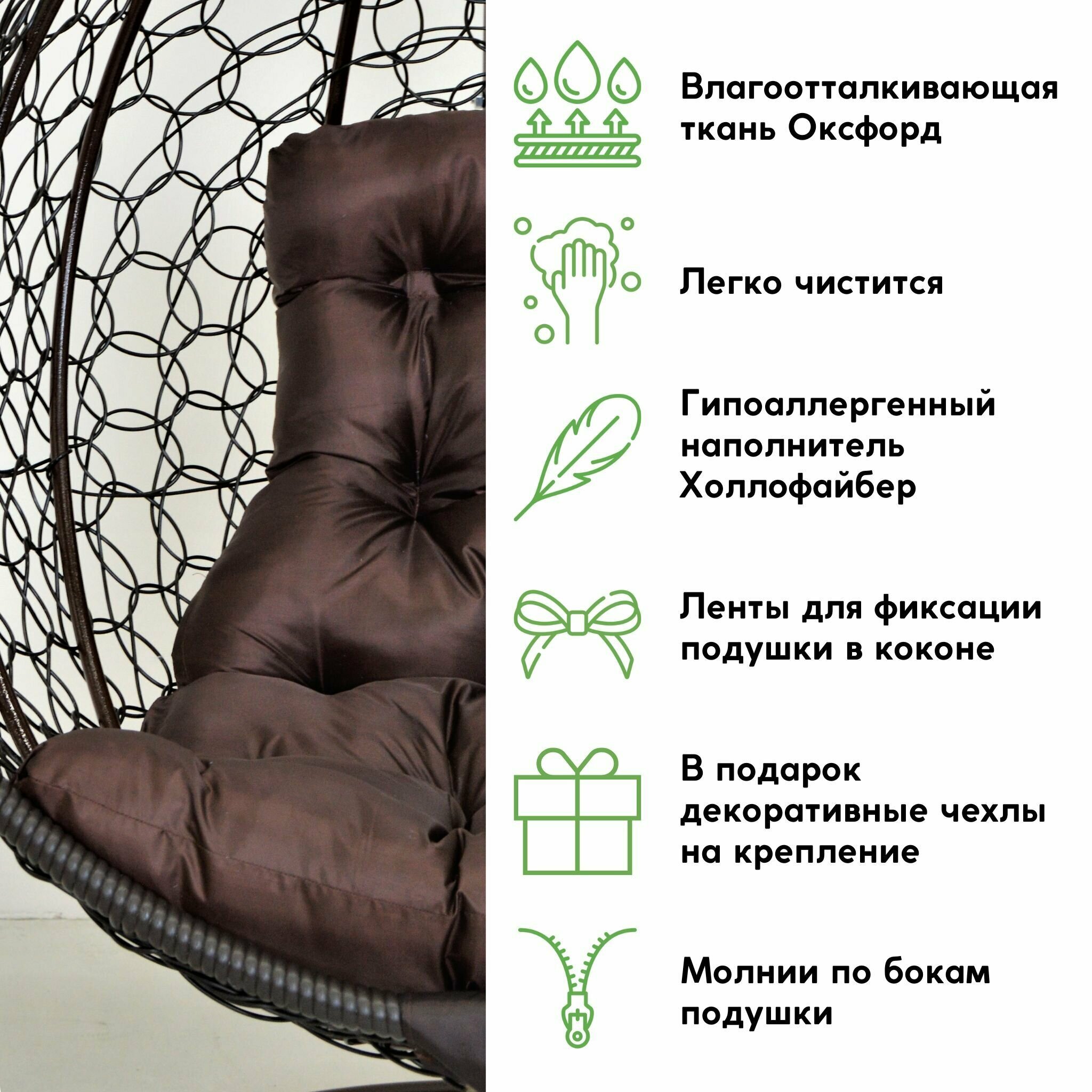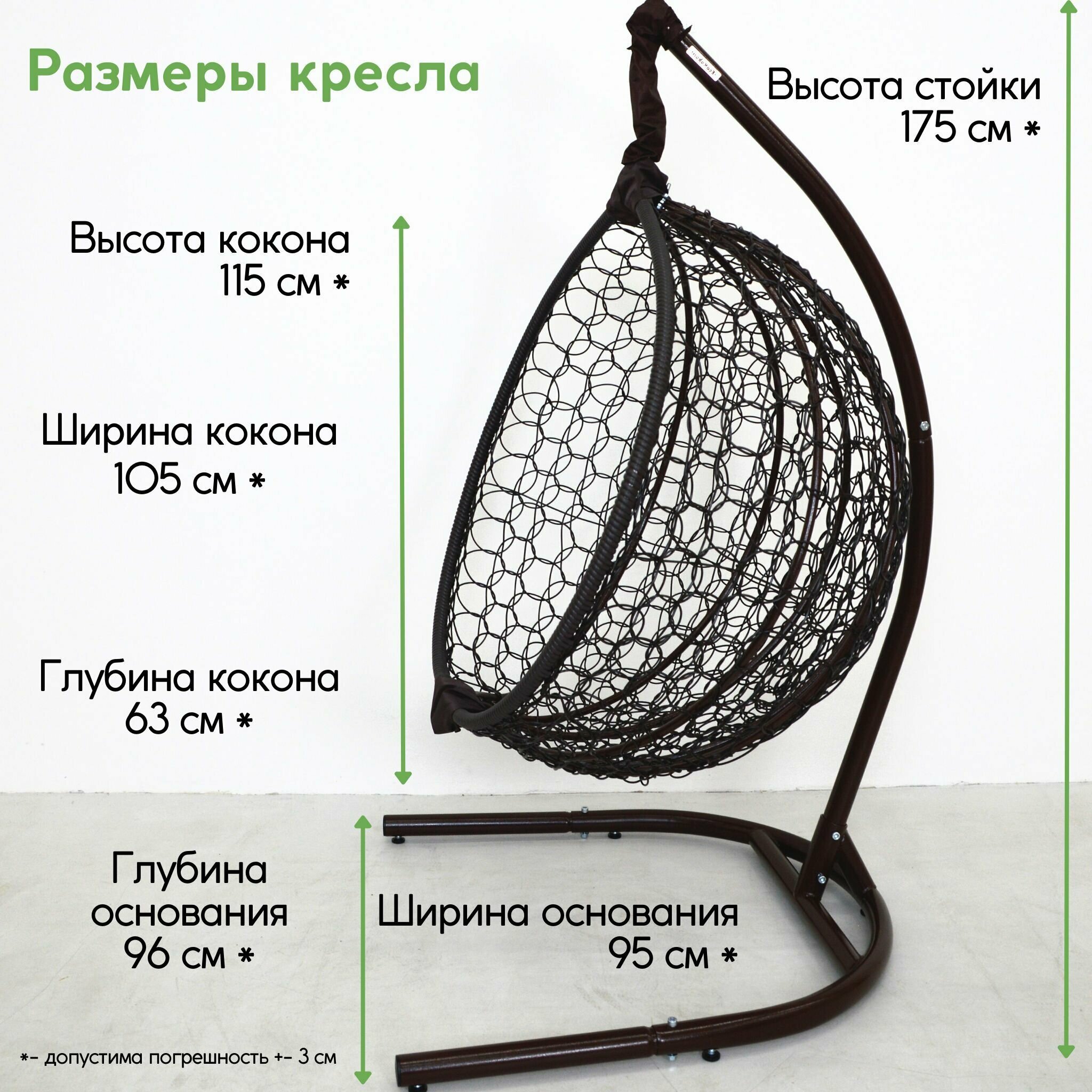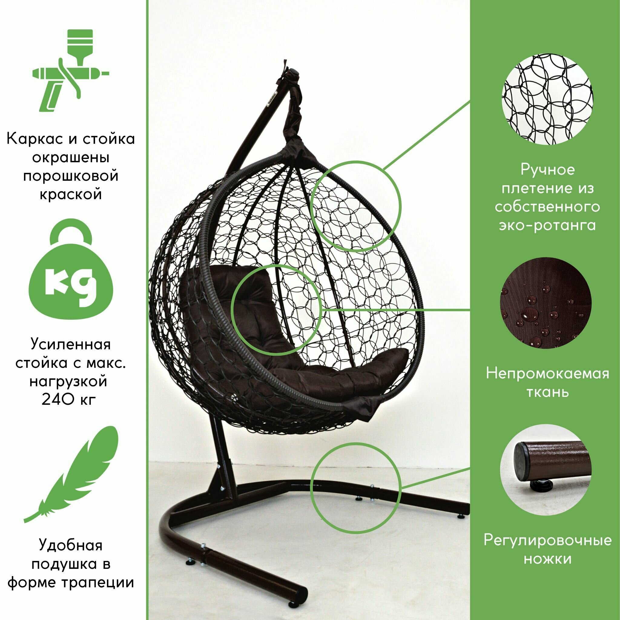 Подвесное кресло садовое кресло кокон Mollis Ажур 240 кг EcoKokon одноместное с усиленной стойкой Коричневый с коричневой подушкой трапеция
