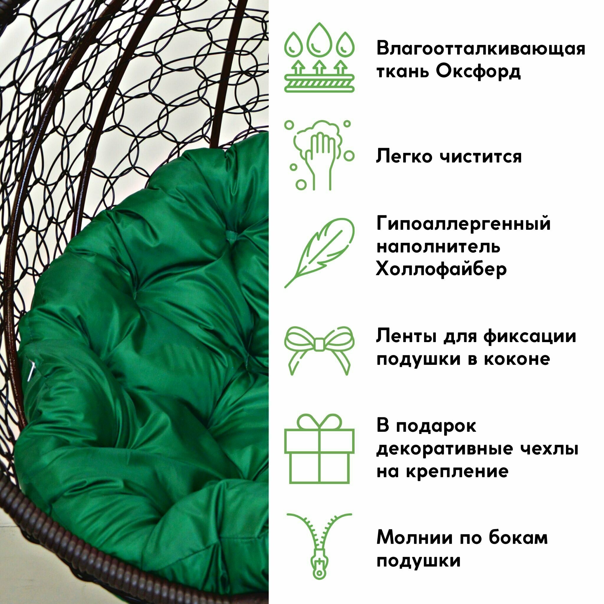 Подвесное кресло-кокон Mollis для дома и улицы Венге с Зеленой подушкой трапеция