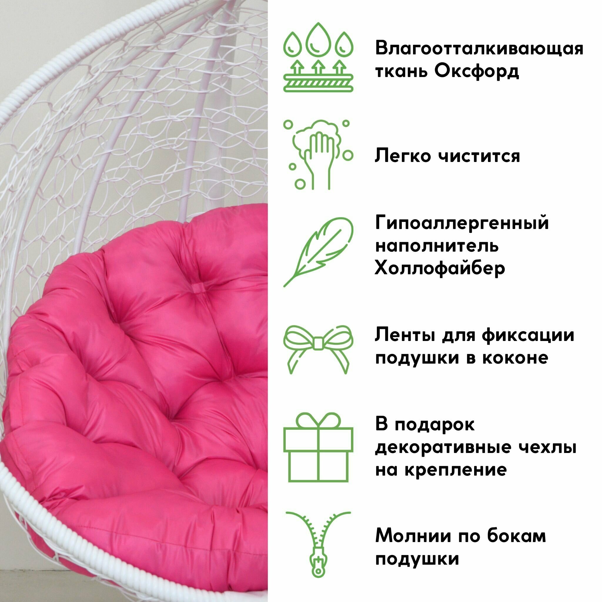 СохранитьПодвесное кресло-кокон Mollis для дома и улицы Белый с круглой Розовой подушкой интересное: