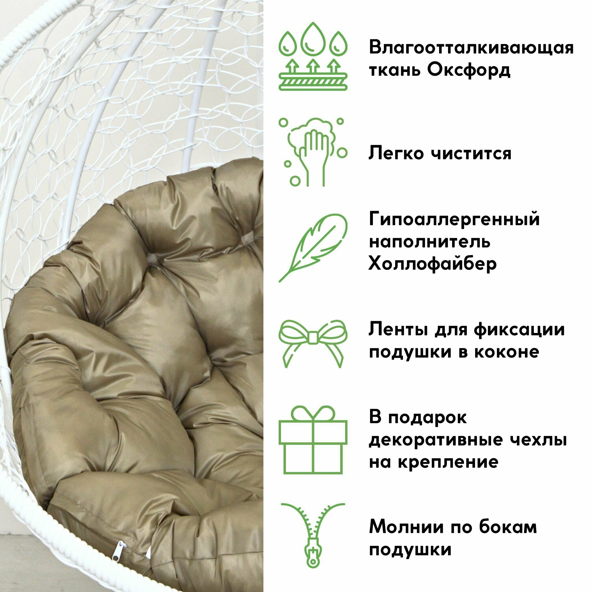 Подвесное кресло-кокон Mollis для дома и улицы Белый с Зеленой подушкой трапеция