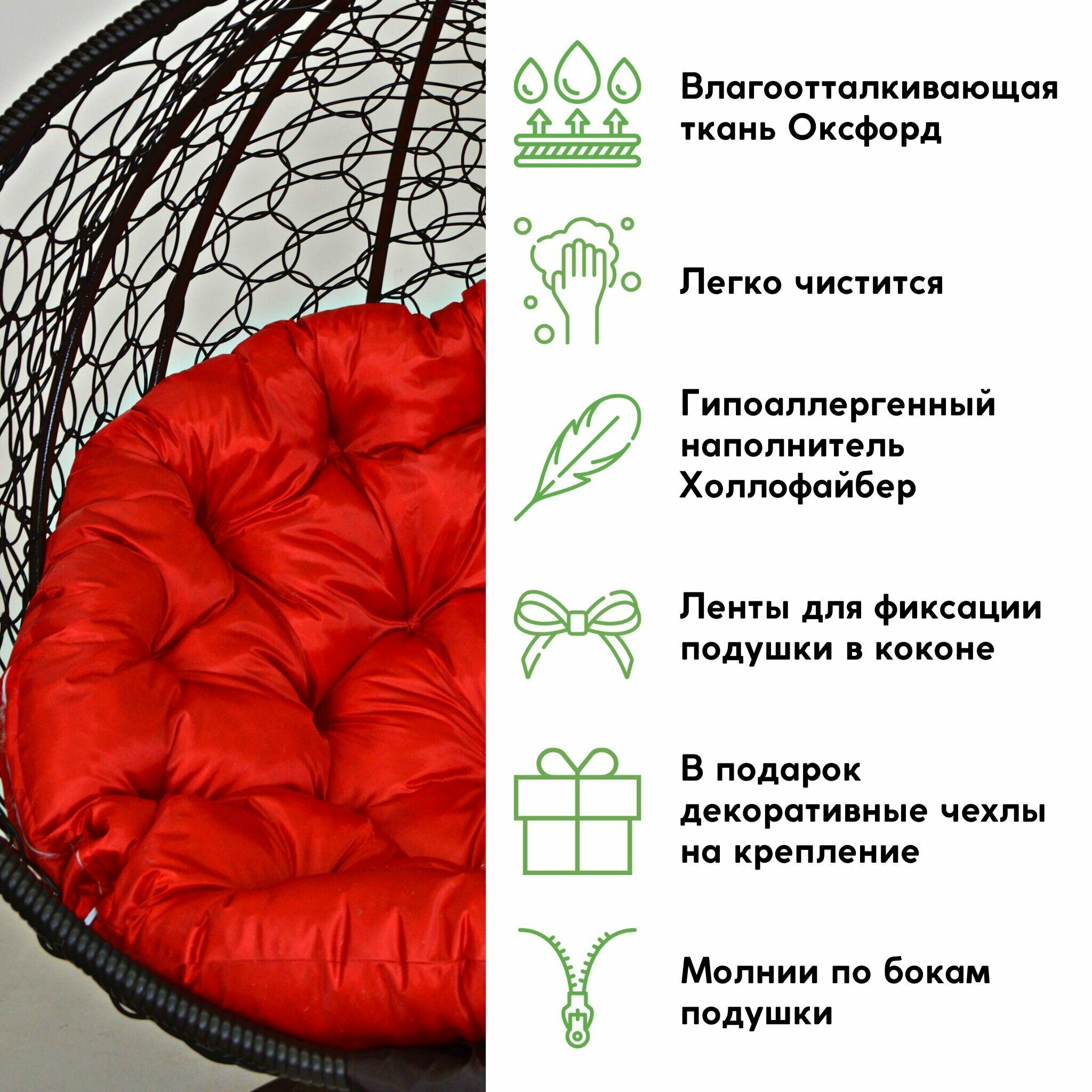 Подвесное кресло-кокон Mollis для дома и улицы Венге с Красной подушкой трапеция