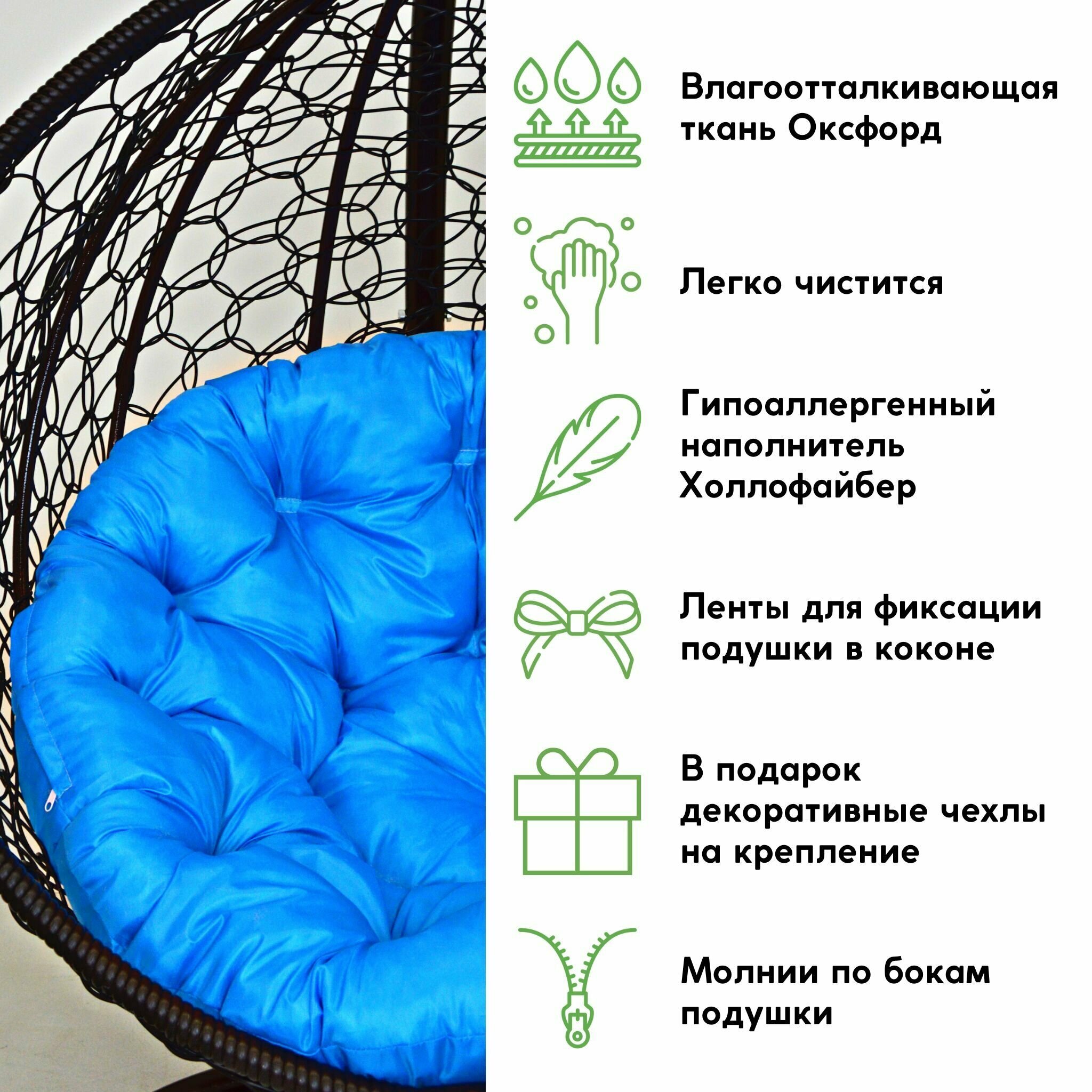 Подвесное кресло-кокон Mollis для дома и улицы Венге с Голубой подушкой трапеция