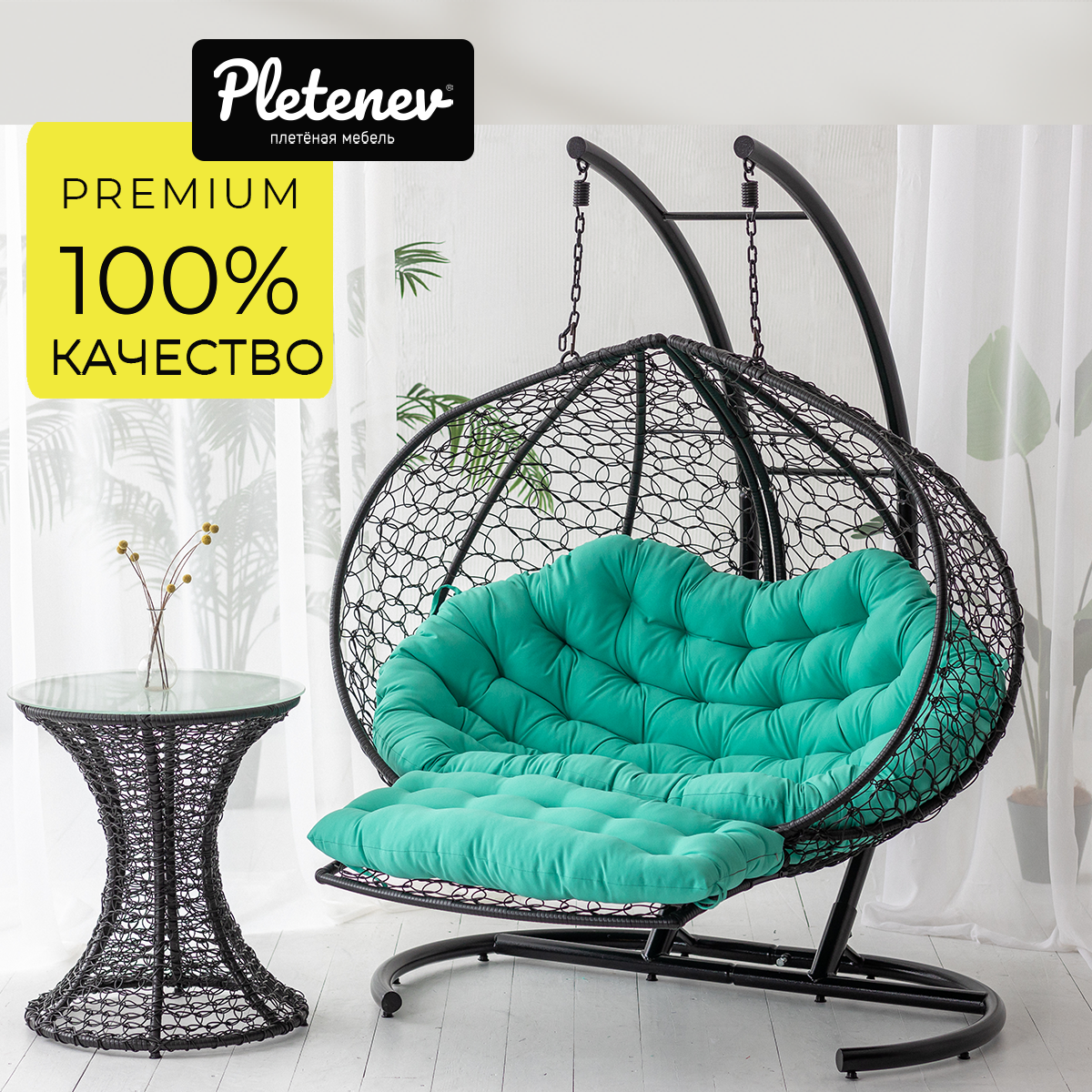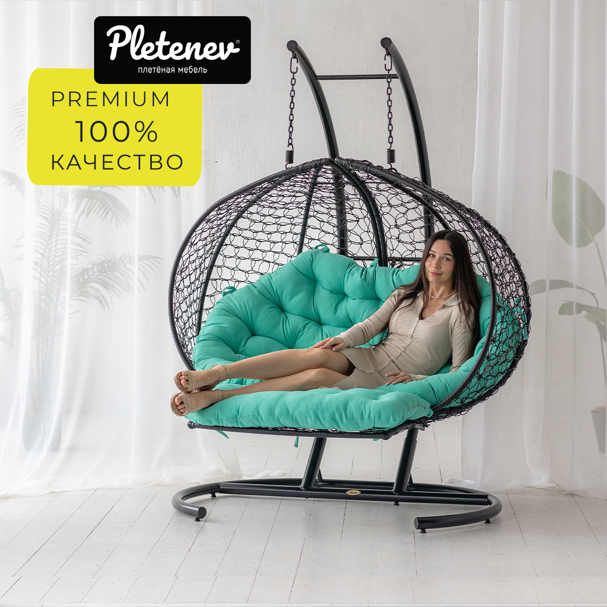 Подвесное кресло Pletenev Двухместное с водоотталкивающей уличной подушкой