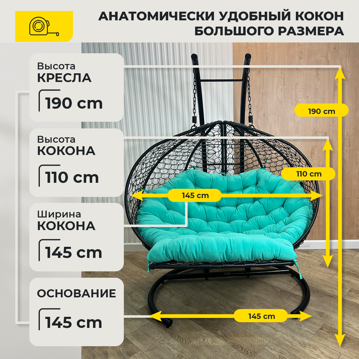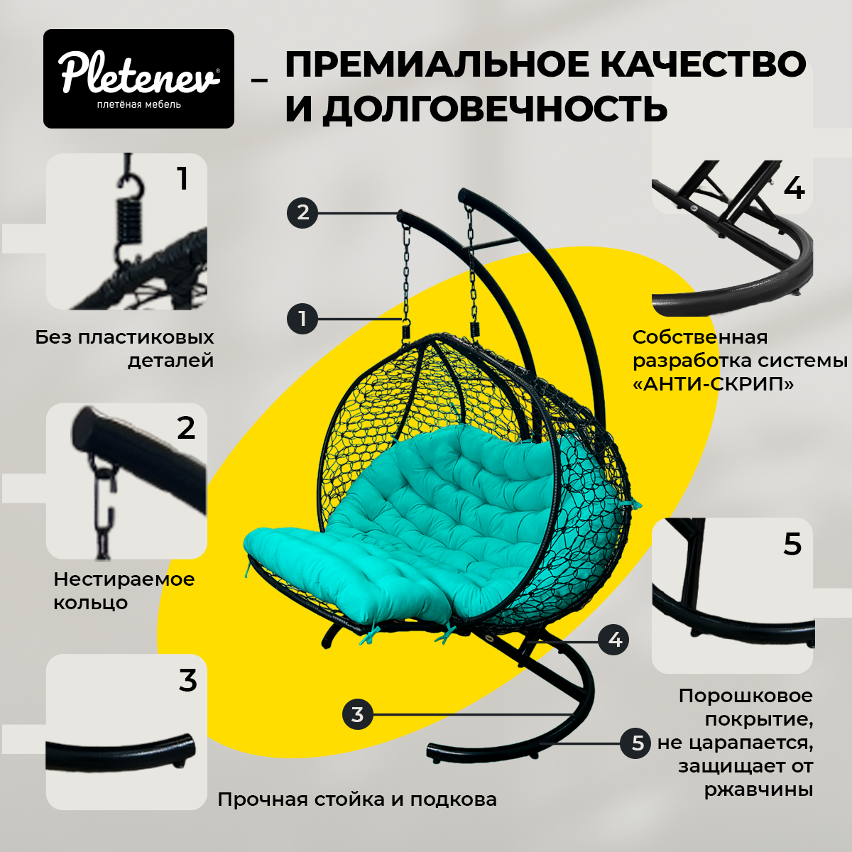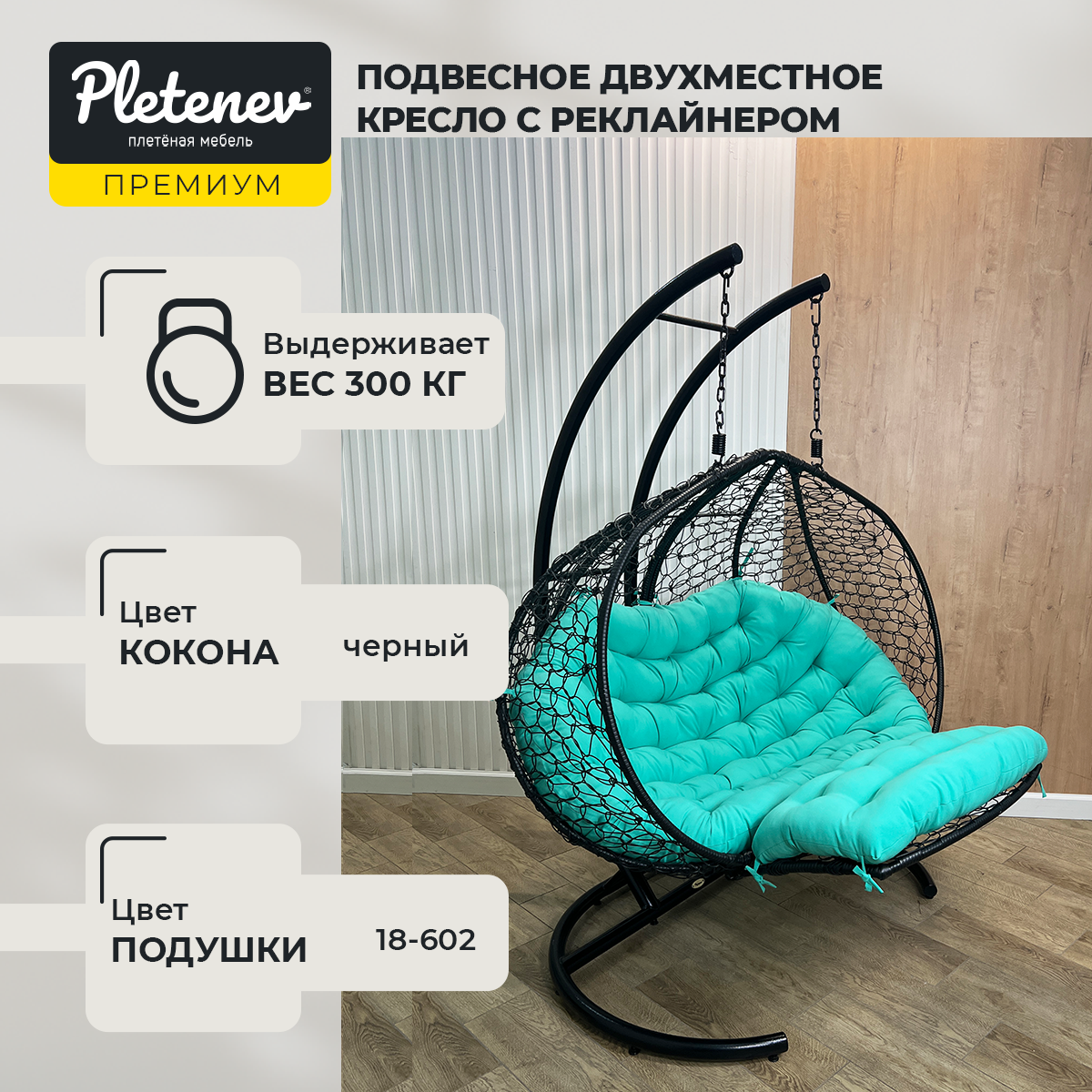 СохранитьПодвесное кресло-реклайнер "Pletenev" двухместное черное с зеленой подушкой интересное: