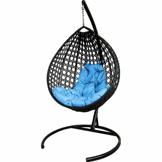 Подвесное кресло капля Люкс чёрное, голубая подушка