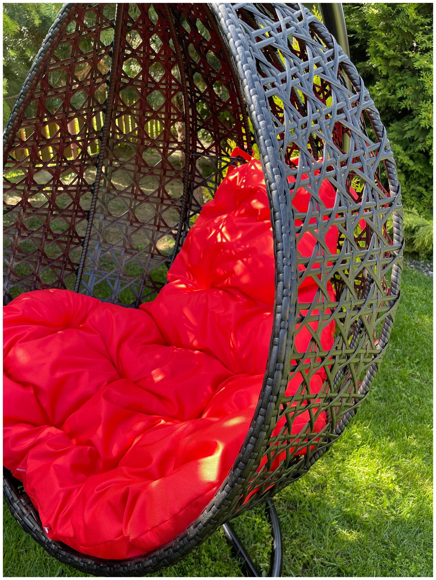 Подвесное кресло капля Люкс чёрное, красная подушка