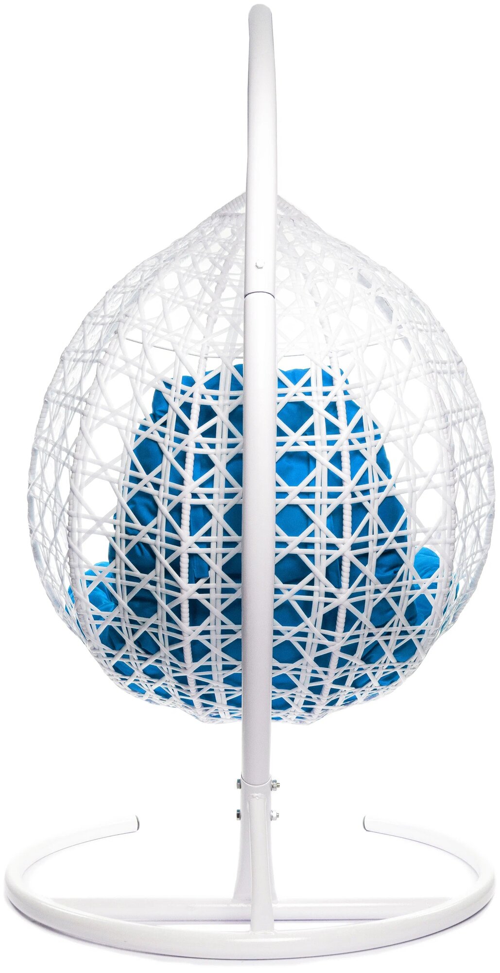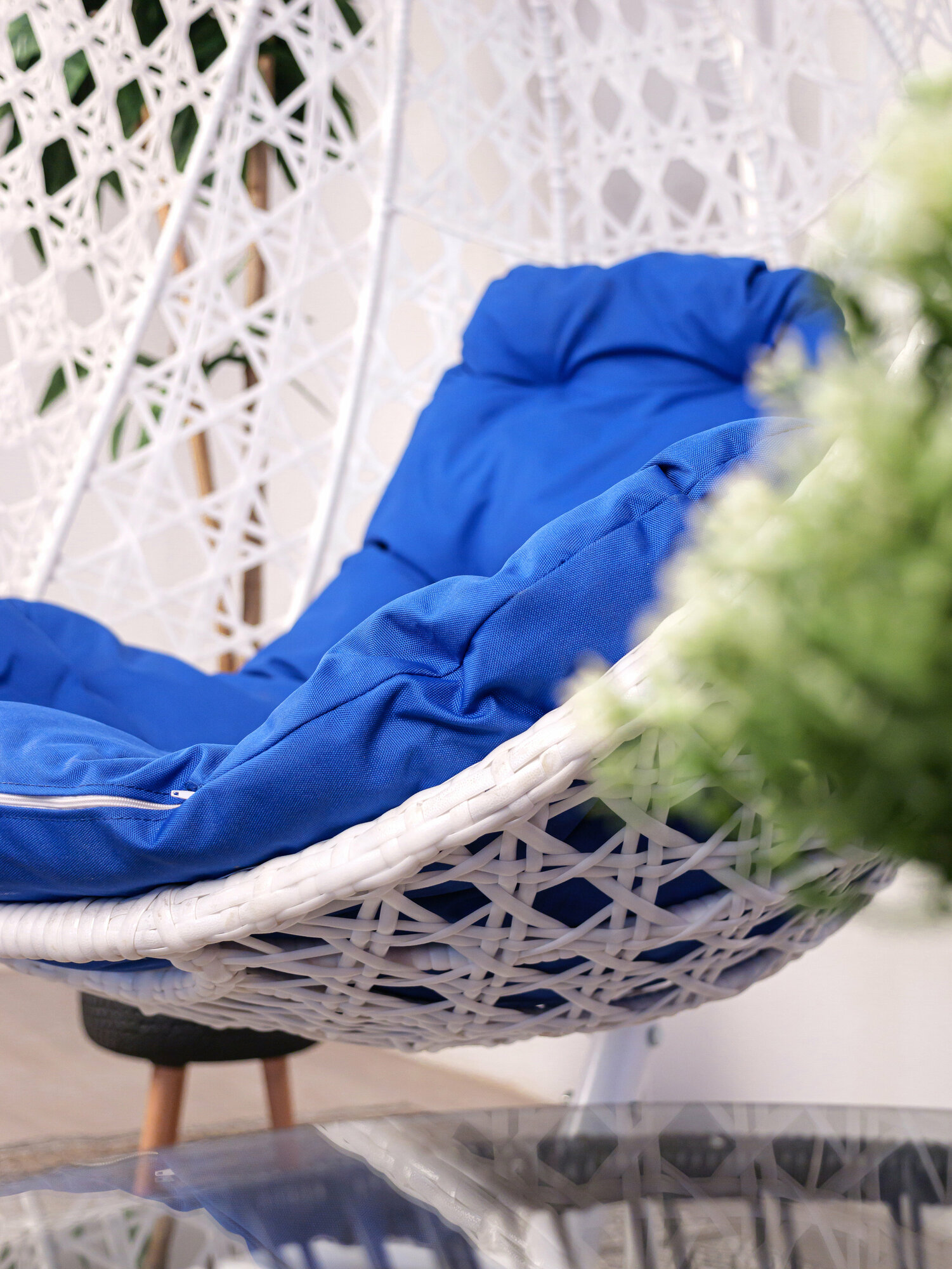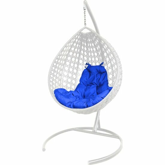 Купить Подвесное кресло M-group капля люкс с ротангом белое синяя подушка