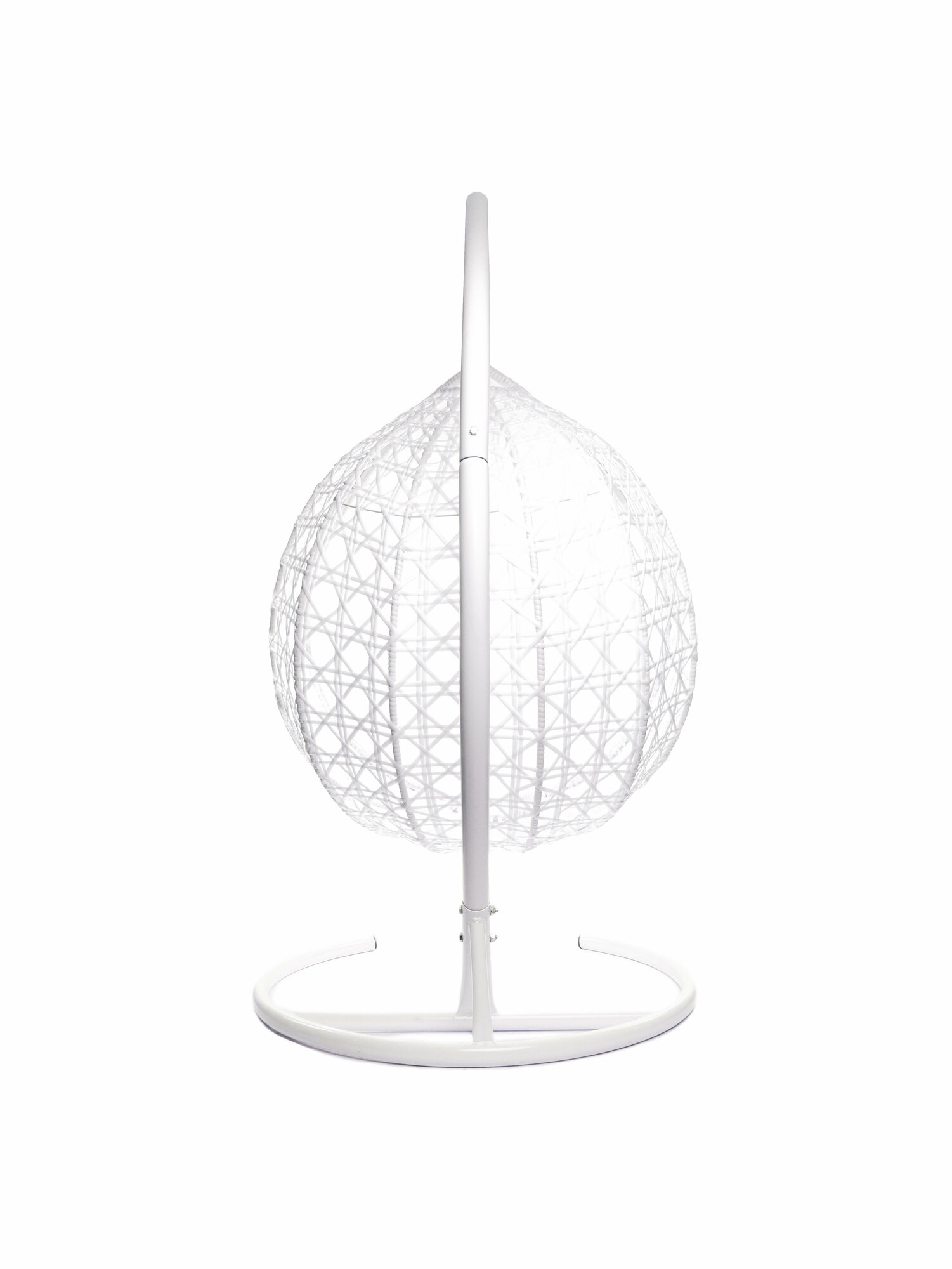 Подвесное кресло M-group капля люкс с ротангом белое бежевая подушка