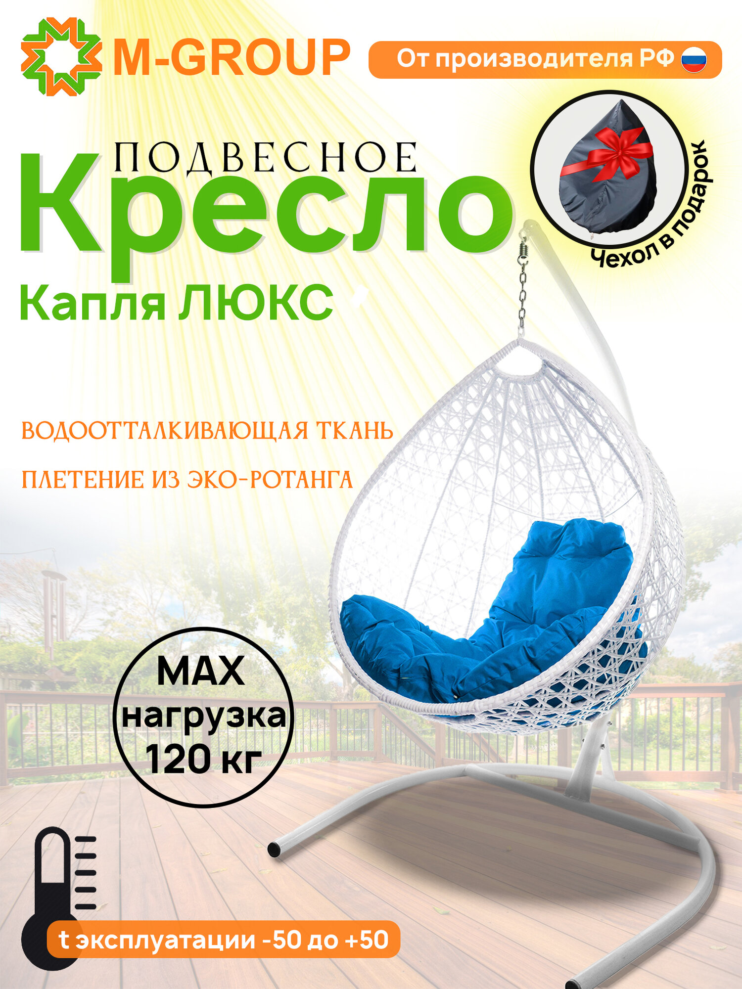 СохранитьПодвесное кресло M-group капля люкс с ротангом белое синяя подушка интересное: