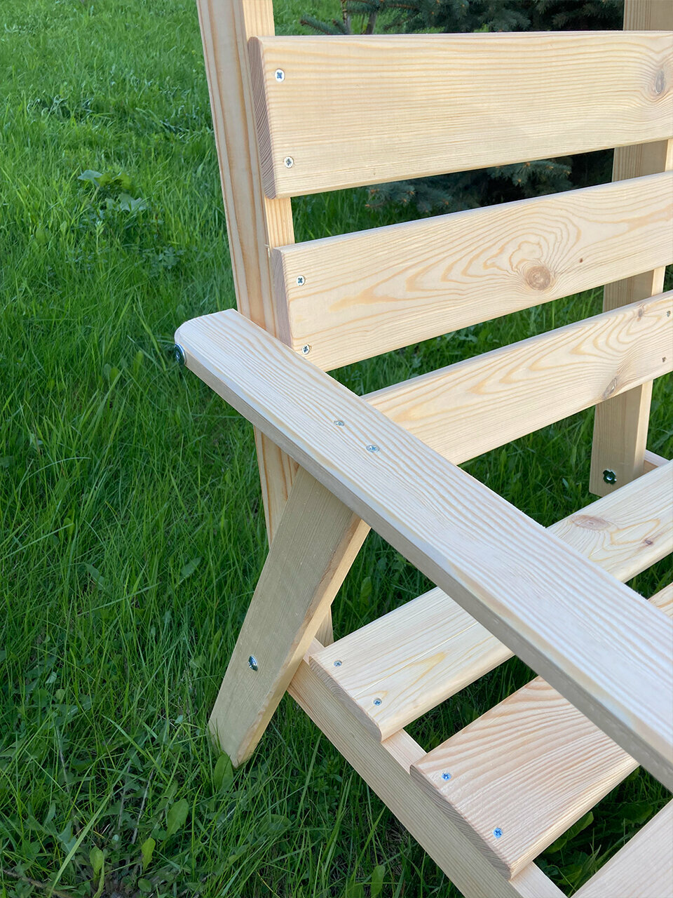 Скамейка садовая Классика с деревянными спинкой и сиденьем без покраски, лавочка для дачи с металлическим каркасом