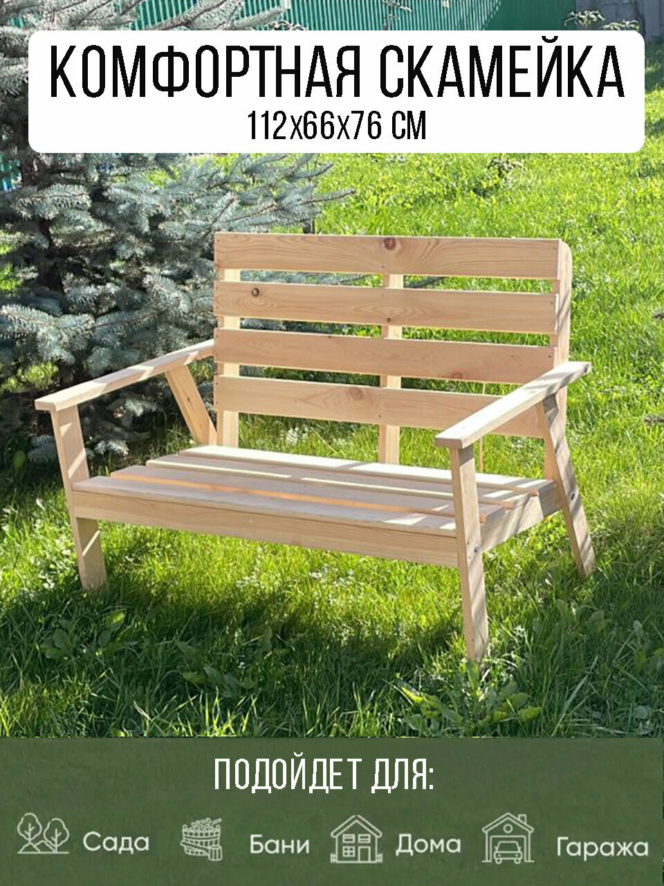 Скамейка садовая деревянная, размеры 112*66*76 см. интересное: