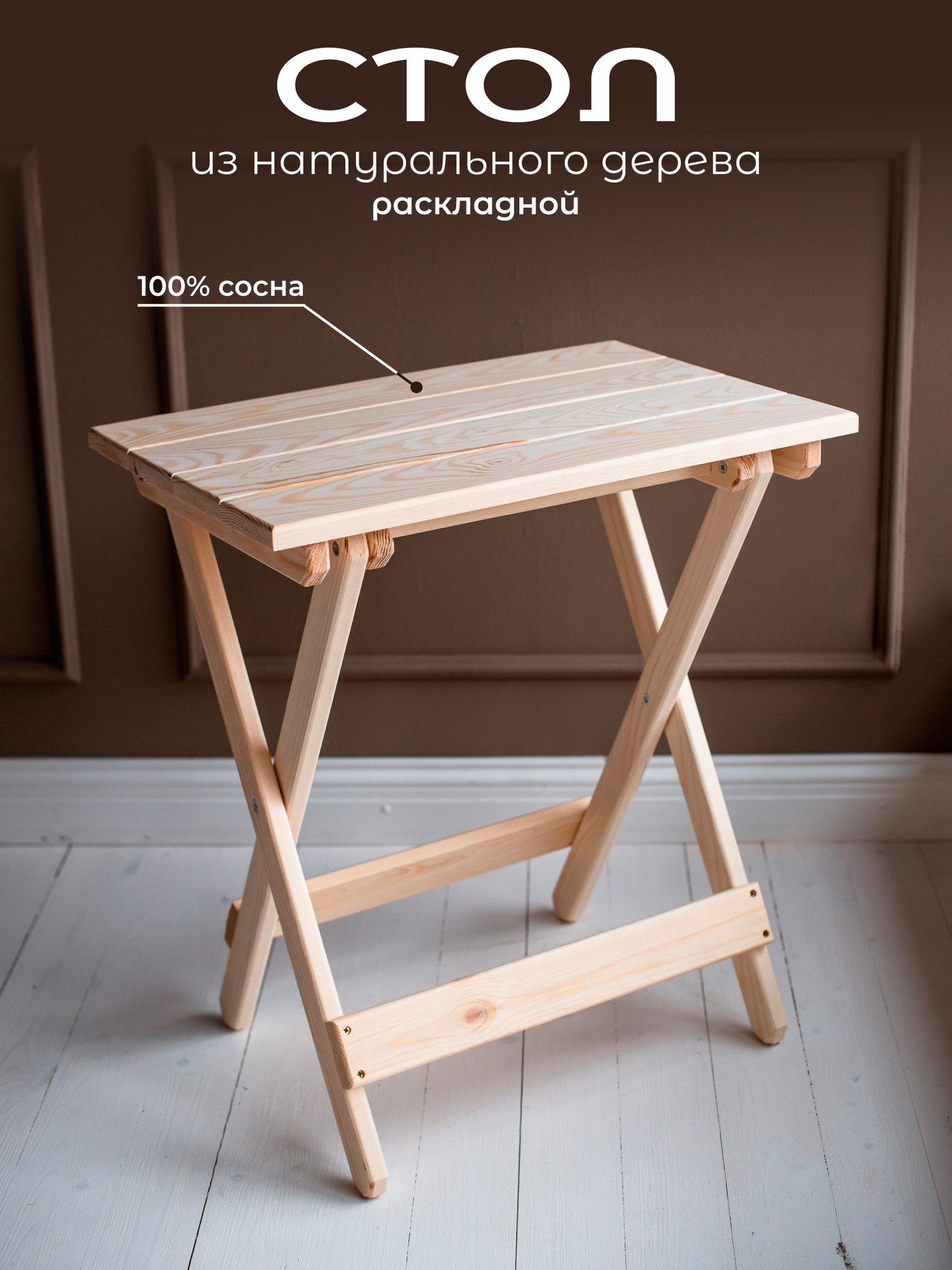 Стол складной из массива дерева для рыбалки, балкона, сада и бани