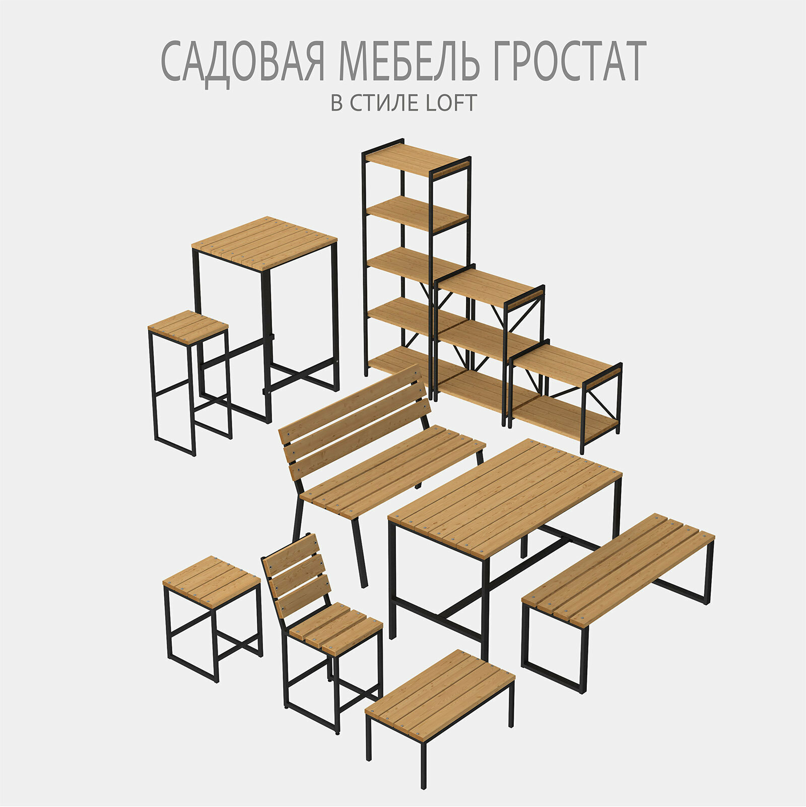 Стол уличный садовый GOOD loft plus, столик деревянный для дачи, для сада, для рассады, журнальный, металлический столик лофт, 70х37х30 см, гростат