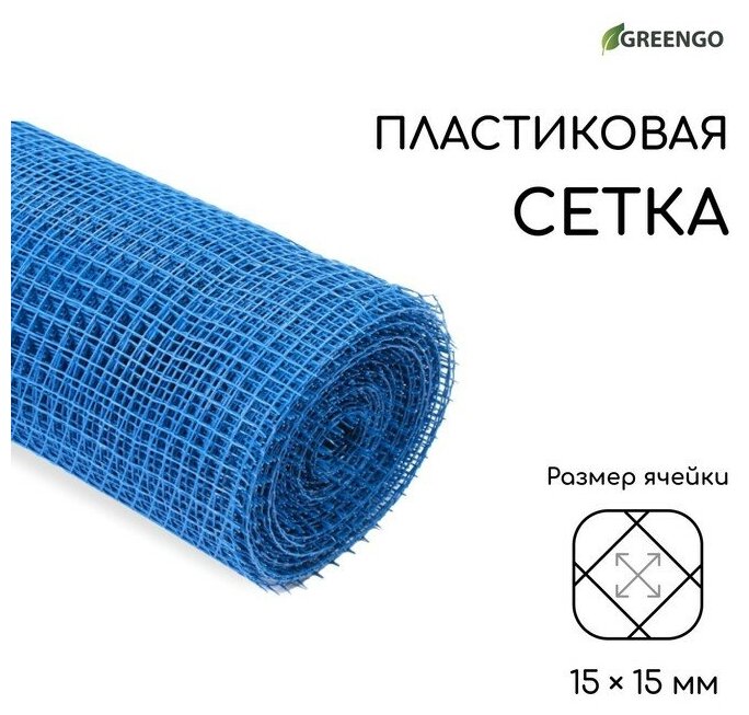 Сетка садовая, 1 × 20 м, ячейка ромб 15 × 15 мм, пластиковая, синяя, Greengo