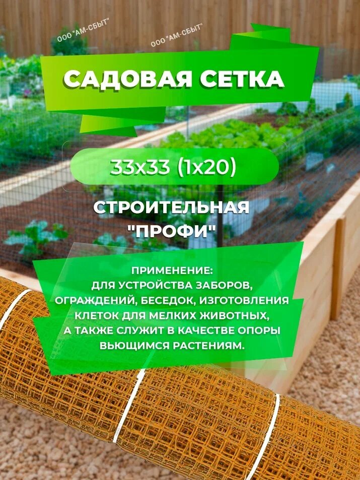Садовая сетка квадратная 33х33 (1 х20) Строительная "профи" коричневый .