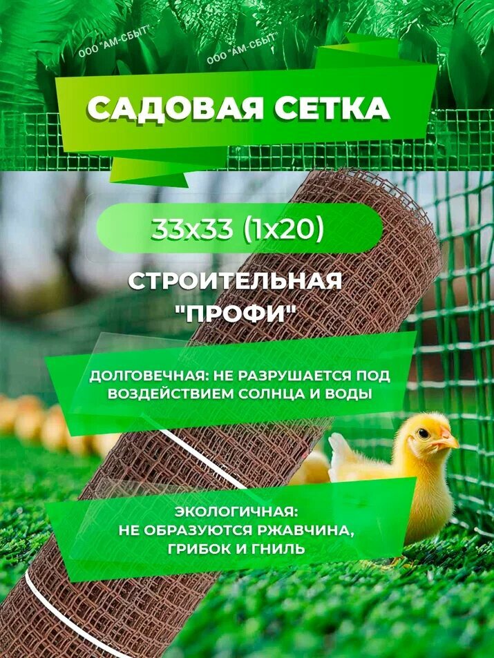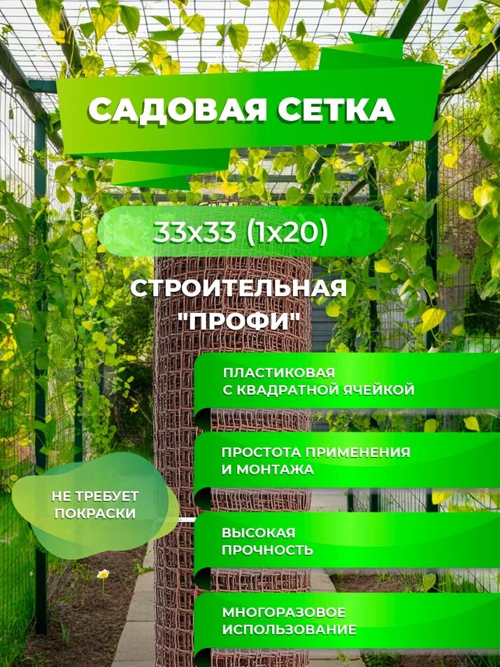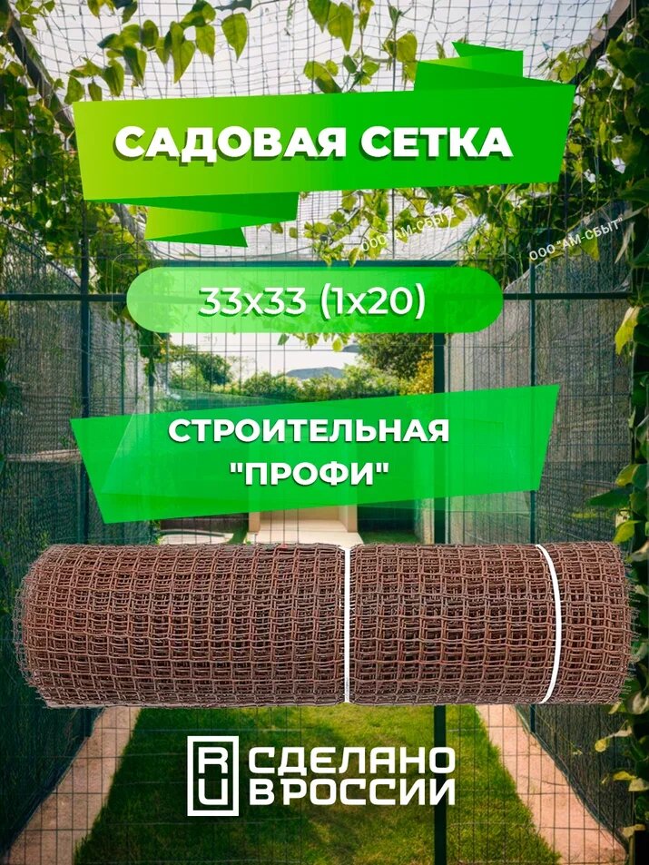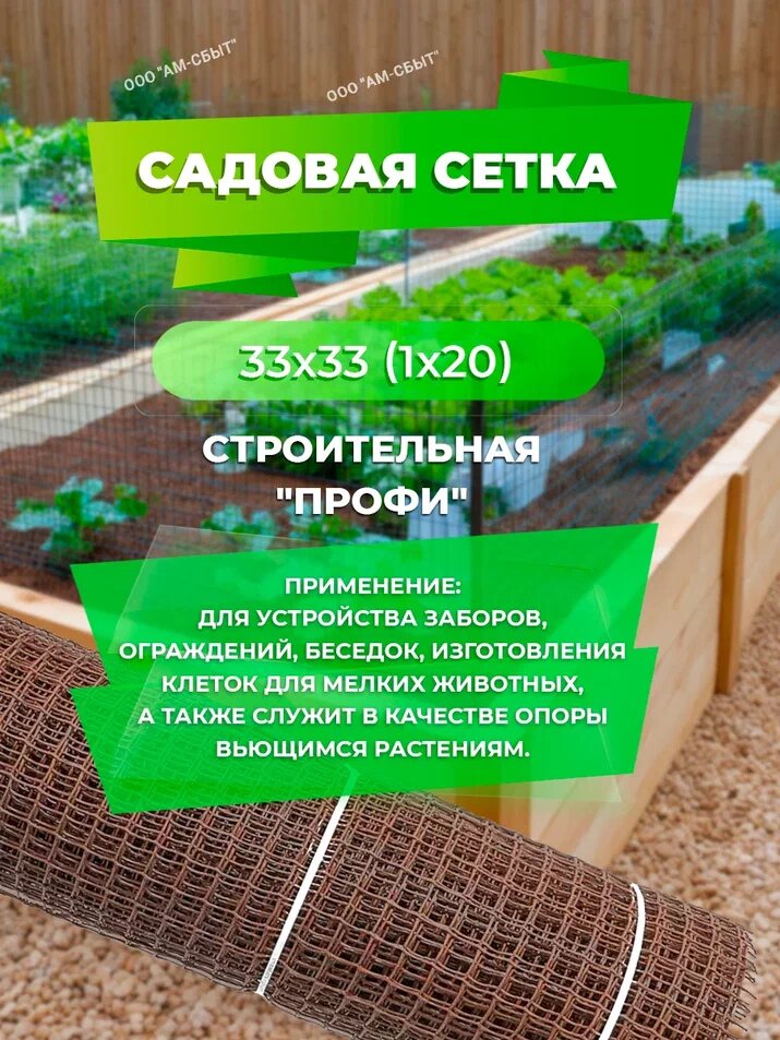 СохранитьСадовая сетка квадратная 33х33 (1 х20) Строительная "профи" коричневый интересное: