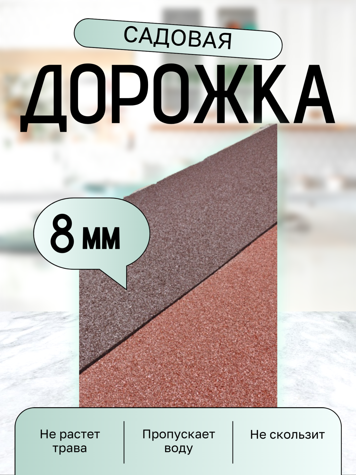 СохранитьДорожка садовая резиновая. Травмобезопасное противоскользящее напольное покрытие. Размером 6м на 50см Коричневый интересное: