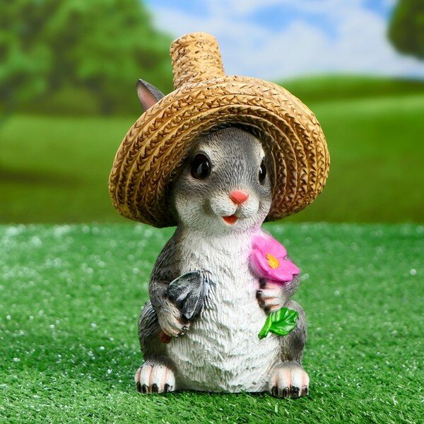 Садовая фигура"Зайка в соломенной шляпе с цветочком" 12х13х21,5см Хорошие сувениры 4793741 .