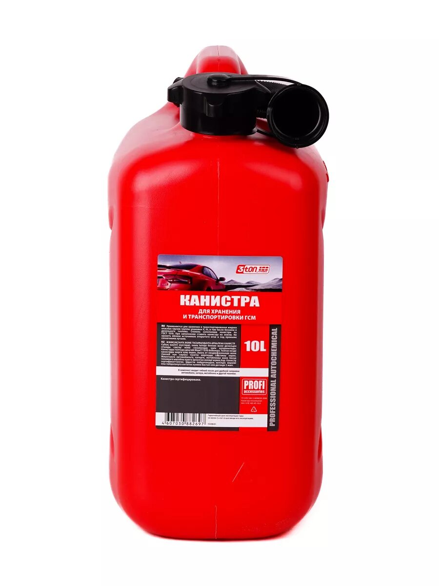Канистра PROFI 10л для топлива в комплекте с крышкой и лейкой 3TON 55298 3Ton арт. 55298