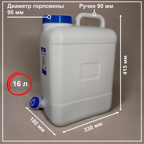 Канистра elfplast "Aqualine" с краном (белый, 16 л), 33х18х41,5 см 383