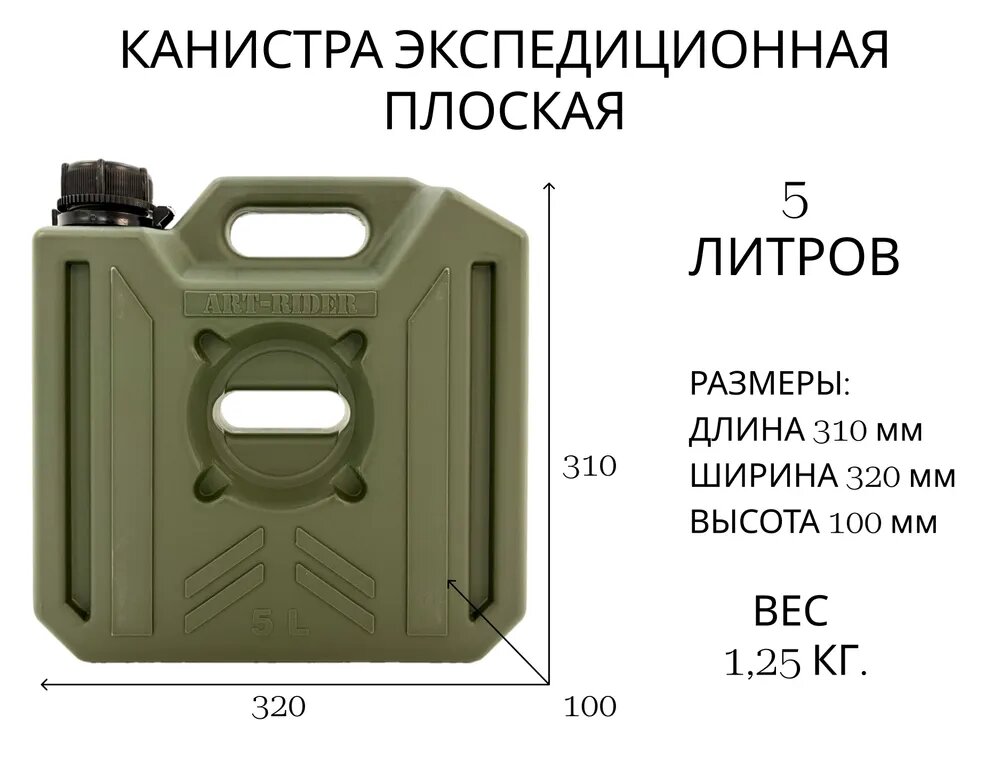 СохранитьКанистра для бензина ART-RIDER 5 л, канистра для воды, канистра экспедиционная, зеленая интересное: