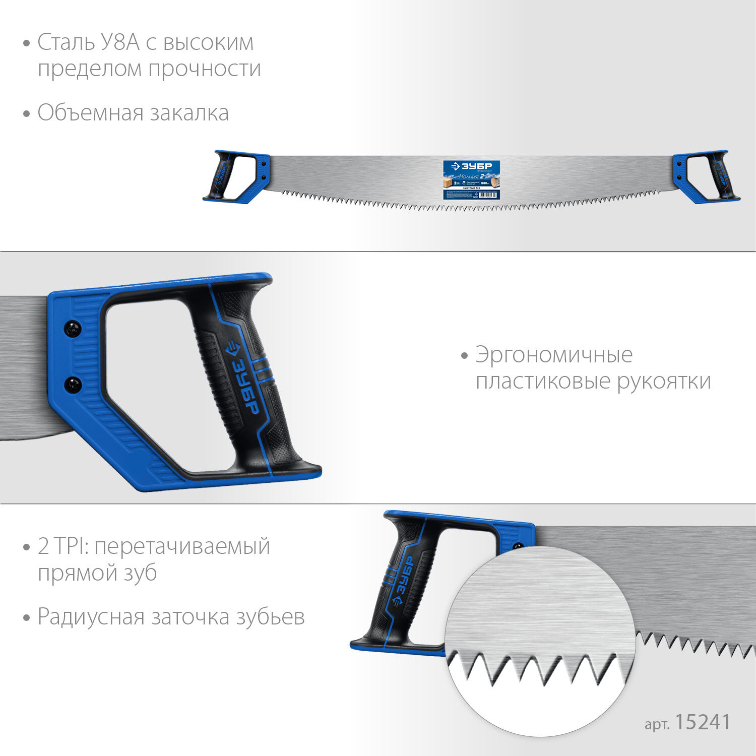 ЗУБР Пила двуручная с пластиковыми рукоятками 1000 мм 15241 интересное: