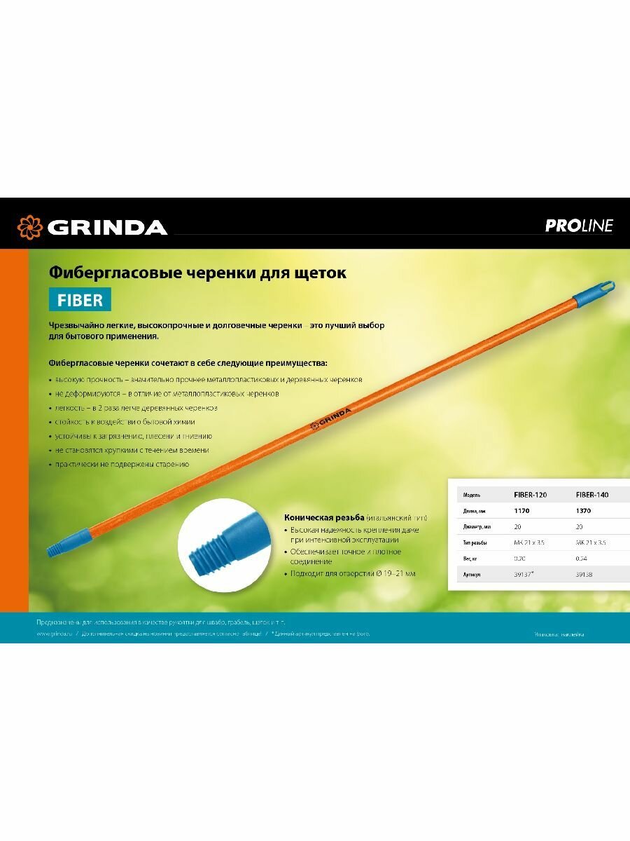 Черенок фибергласовый для щеток 1170 мм. Grinda 39137 интересное: