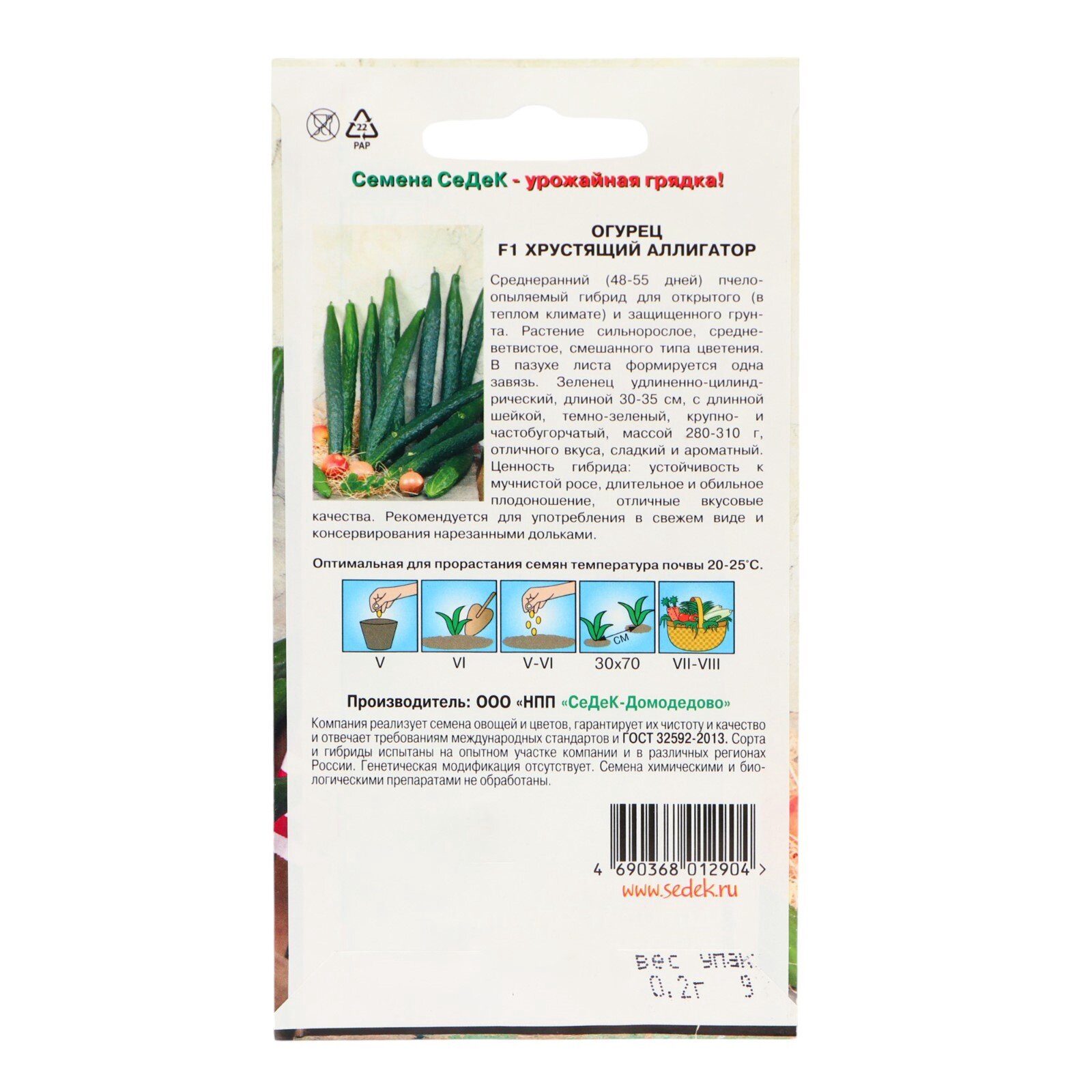 Семена Огурец Аллигатор 2 F1 0,2 г (СеДеК)